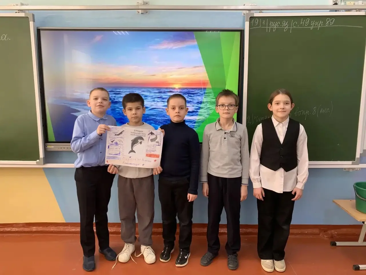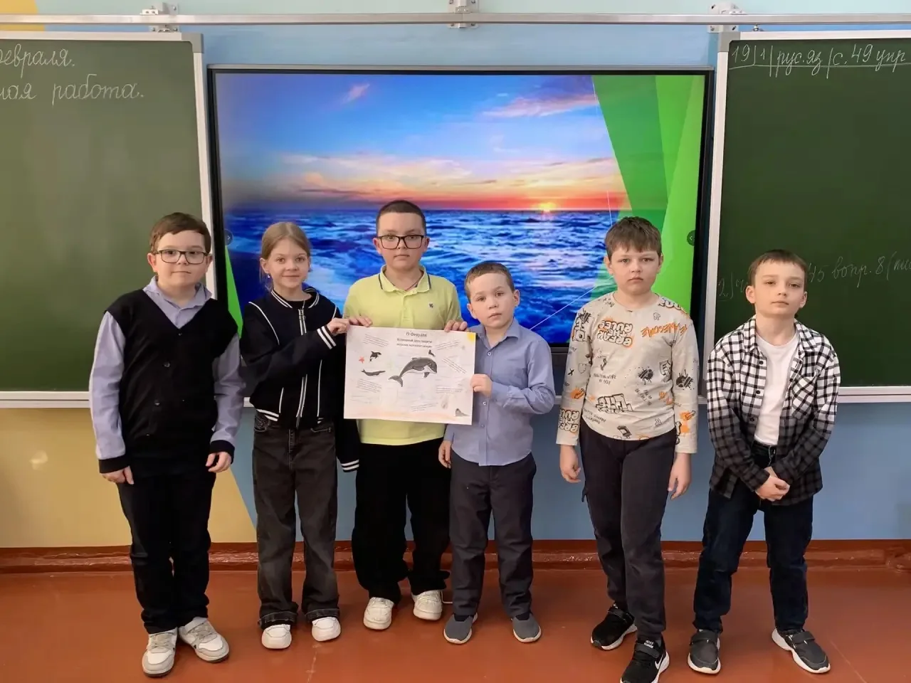 На уроке экологии в 3 «И» классе поговорили о том, кто такие морские млекопитающие. Почему они млекопитающие (кормят детенышей молоком, дышат легкими), отличия млекопитающих от рыб.