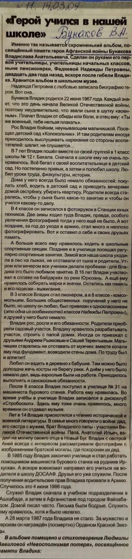 В ШИБЦ советником директора по воспитанию и педагогом-библиотекарем к Дню воина-интернационалиста, Дню памяти о россиянах, исполнявших служебный долг за пределами Отечества, были организованы круглые столы с обучающимися разных классов. Ученики 6 класса презентовали проекты «Портрет героя моей малой Родины». В рамках проекта школьники под руководством наставников провели исследовательскую работу, нашли материалы о воинах-интернационалистах г. Бакала, о Бунакове Владиславе Анатольевиче, Герое-выпускнике нашей школы, награжденном Орденом Красной Звезды за мужество и героизм в Афганистане. Дети читали стихи.