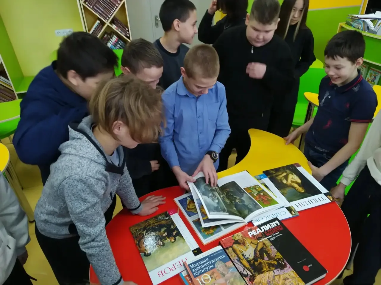 В ШИБЦ с педагогом-библиотекарем ребята попытались разгадать тайны известной картины «Богатыри» В. М. Васнецова, попробовали понять настроение А. К. Саврасова во время работы над картиной «Грачи прилетели», познакомились с шедеврами мировых мастеров: Клода Моне, Винсента Ван Гога, Ивана Айвазовского и Валентина Серова.
