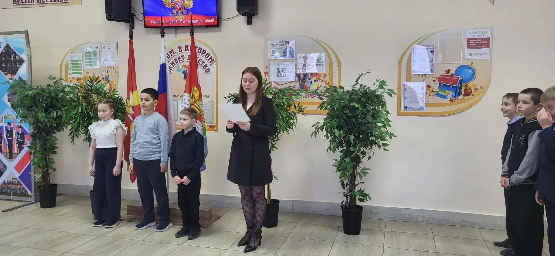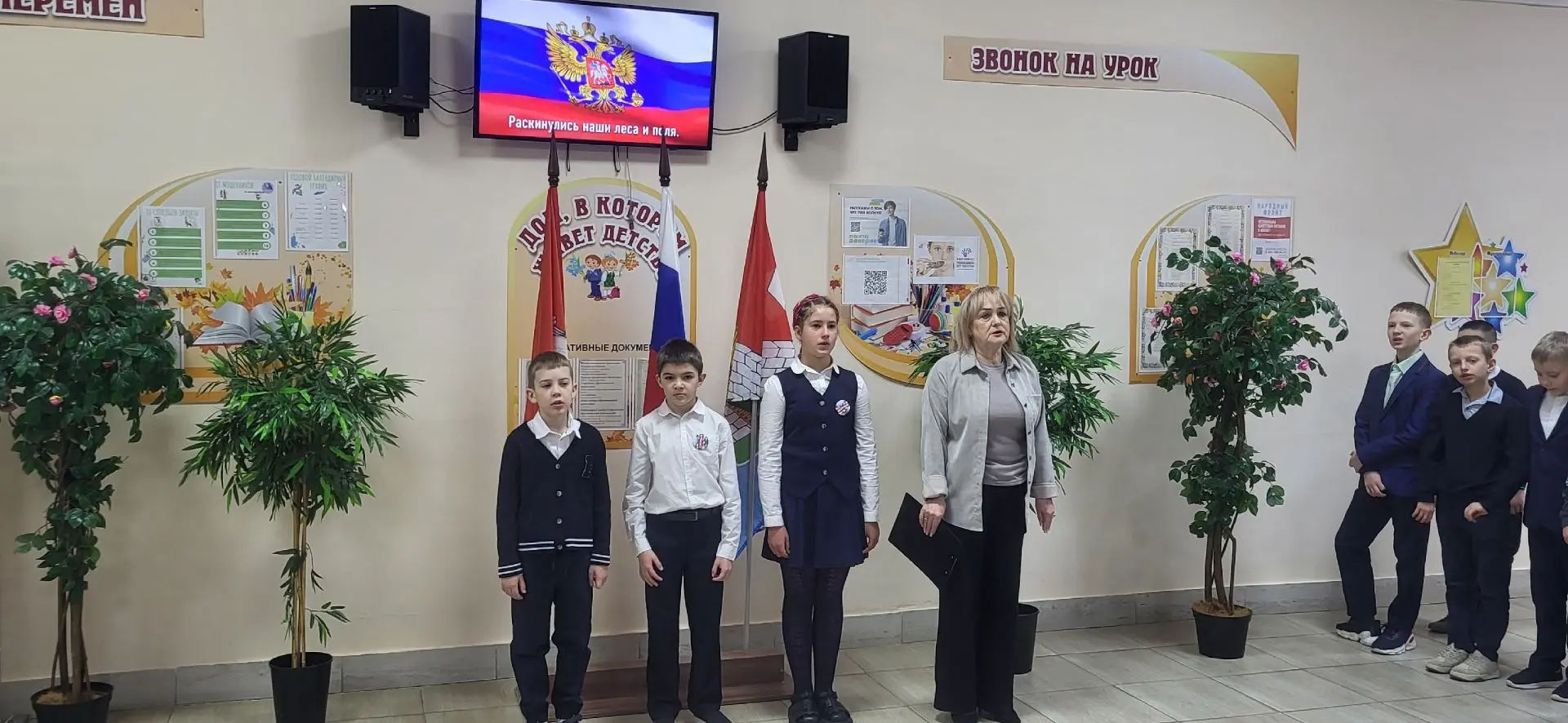 🇷🇺 2 марта в начальном звене торжественную церемонию выноса Государственного флага организовали и провели учащиеся дежурного 2 В класса и классный руководитель Давыдова Кристина Владимировна.