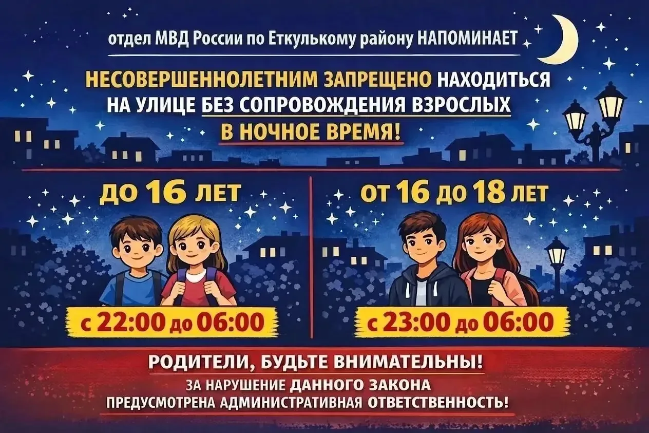 ОМВД России по Еткульскому району напоминает о действующих ограничениях на нахождение детей и подростков в общественных местах в ночное время. Комендантский час — это не формальность, а законодательно закреплённая мера профилактики, направленная на защиту жизни, здоровья и прав несовершеннолетних, а также на предупреждение несчастных случаев и вовлечения подростков в противоправную деятельность.