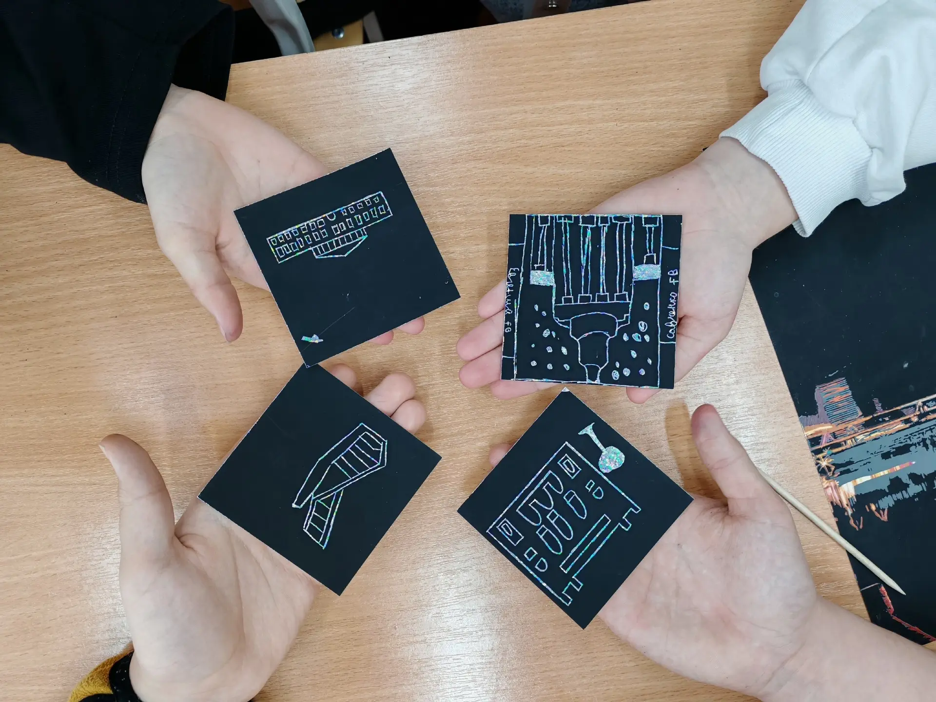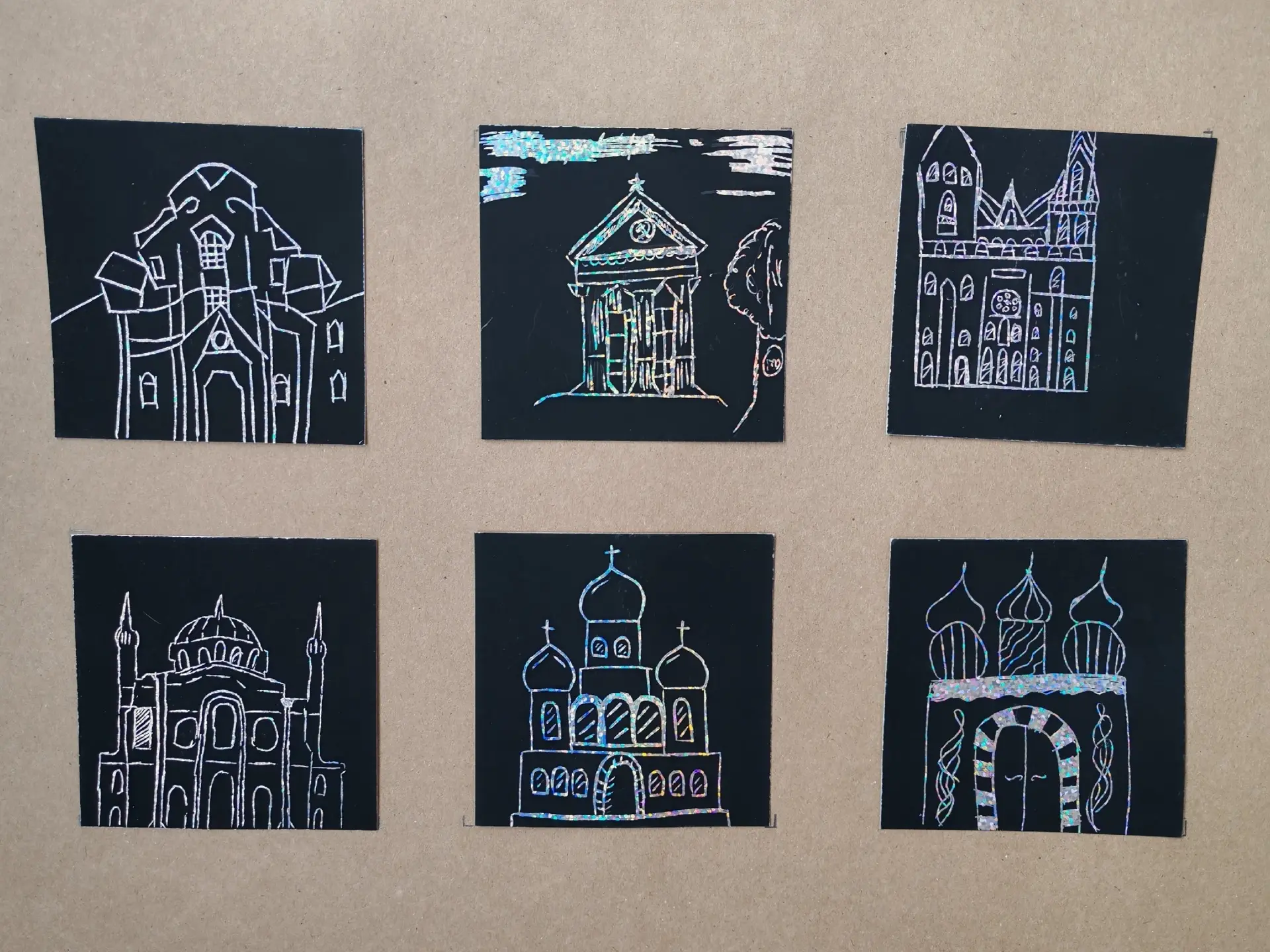 На уроках изобразительного искусства в 7 классах ученики школы погрузились в увлекательный мир архитектуры и изучали тему “Развитие образно-стилевого языка архитектуры”. Но не только теорию изучают, а также открывают для себя различные техники, среди которых особенно интересной стала техника Граттаж, или, как её ещё называют, скретчинг.