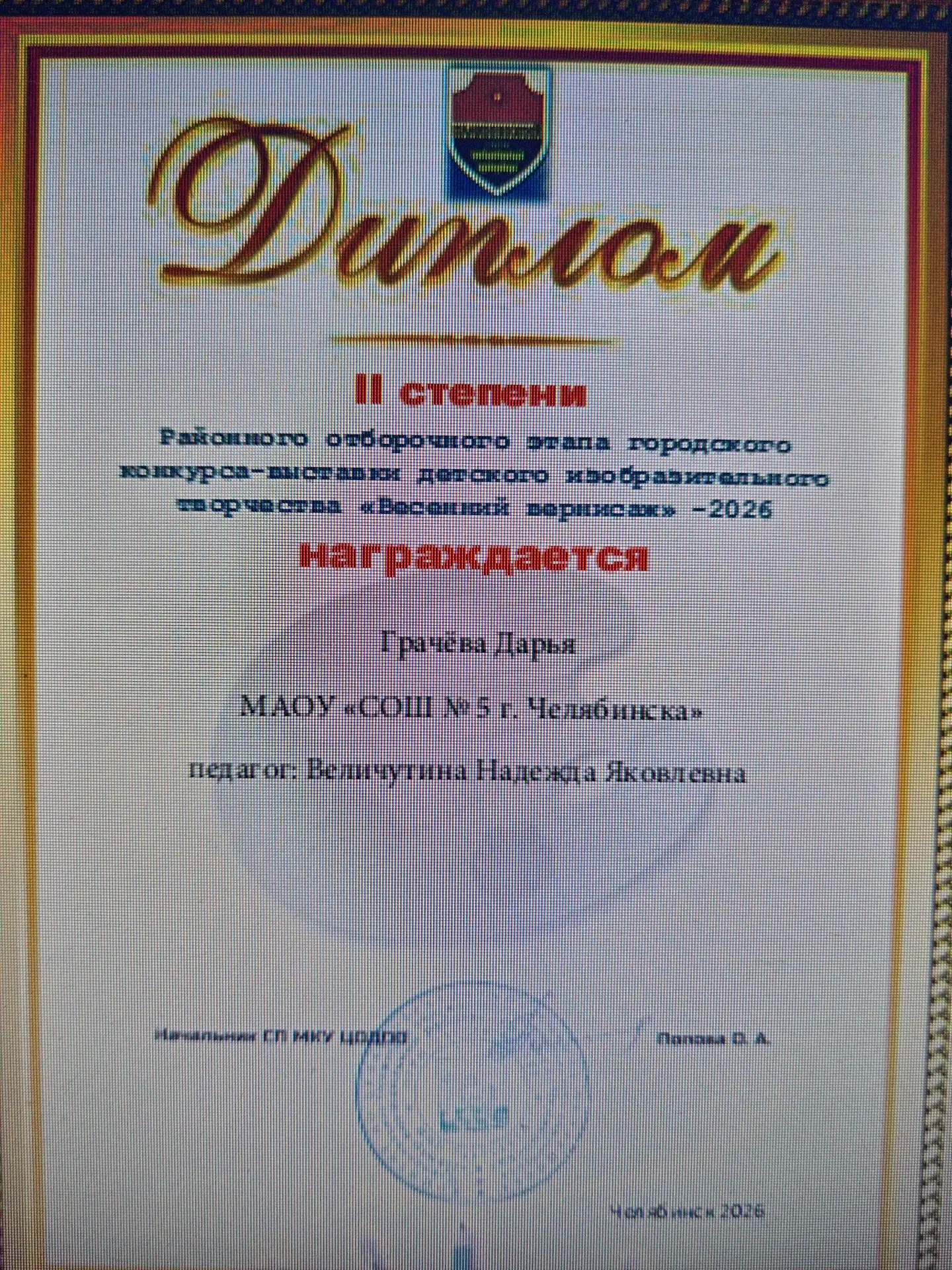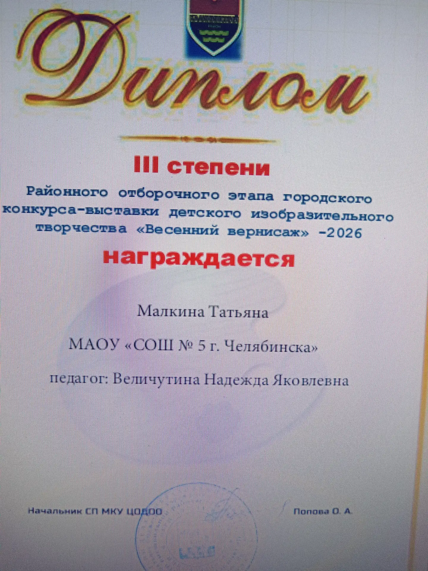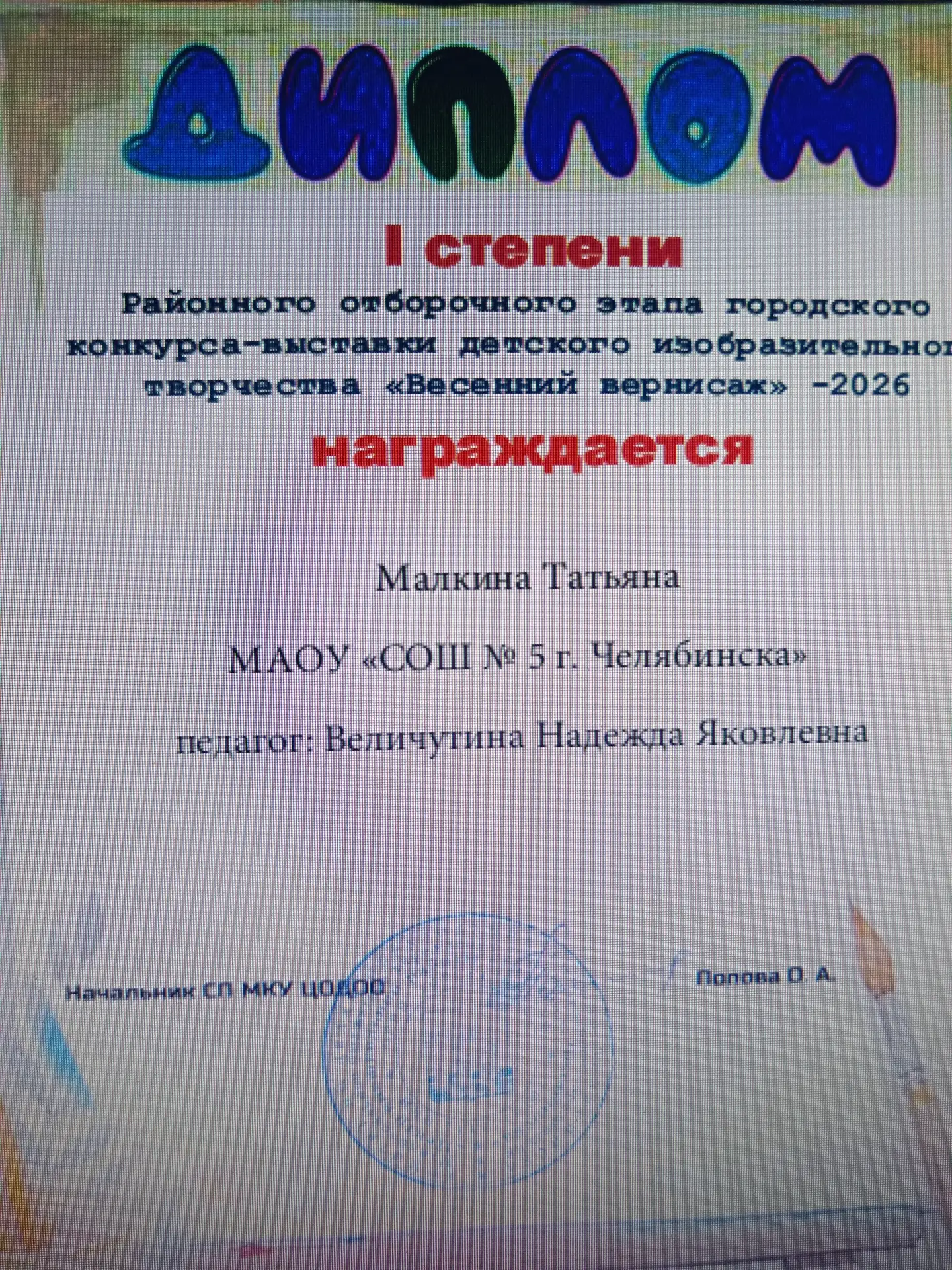 🛑Поздравляем победителей районного конкурса-выставки детского изобразительного творчества с победой! Малкина Татьяна, ученица 8 «В» класса, завоевала дипломы I и III степени. Грачева Дарья, ученица 10 «А» класса, — диплом II степени. Руководитель: Величутина Надежда Яковлевна.