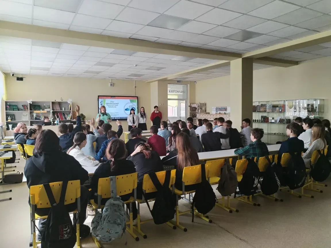 Для учащихся 8 и 9 классов состоялась встреча с представителями ГПОУ «Забайкальский транспортный техникум». Преподаватели и студенты рассказали о специальностях, которые можно получить в техникуме, а также подробно объяснили, как поступить в это учебное заведение.