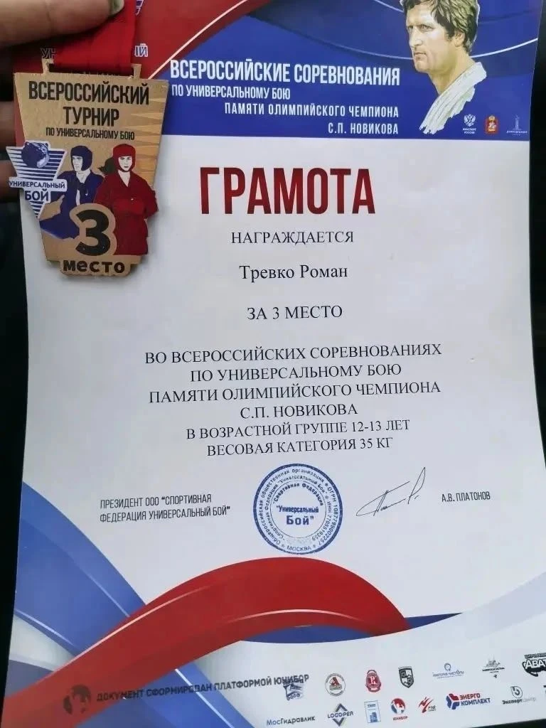 Рома занял 🥉 место в своей возрастной группе и весовой категории.