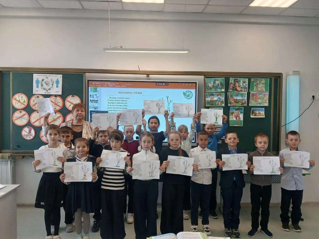 🌿 Особое внимание уделили правилам поведения в лесу, повторили, какие животные и растения занесены в Красную книгу. После занятия школьники вместе с родителями расклеили памятки о том, как нельзя обращаться с берёзой — ведь бережное отношение к природе начинается с малого!