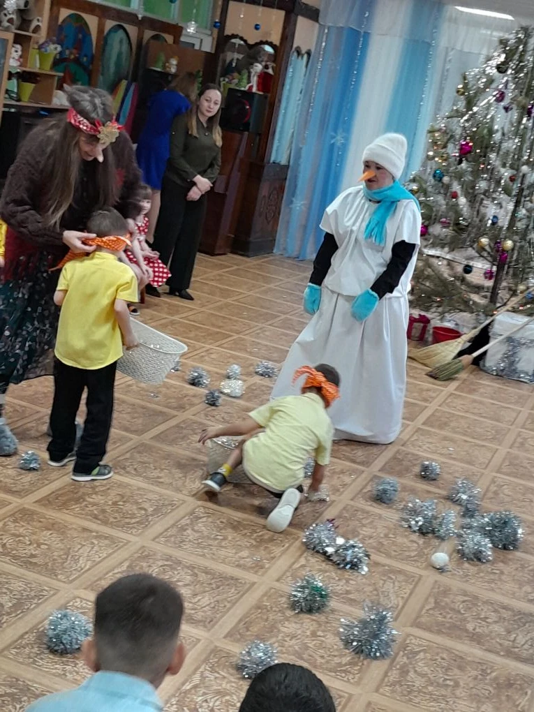 Снеговик, пушистый и весёлый, сразу стал всеобщим любимцем. Он играл с ребятами в снежки (конечно, безопасные и мягкие!), водил хороводы и загадывал загадки о зиме. А вот Баба-яга пришла не сердитая, а очень даже забавная и любопытная. Она призналась детям, что тоже очень любит Новый год и даже хотела украсть нашу красавицу-ёлку для своей избушки на курьих ножках!