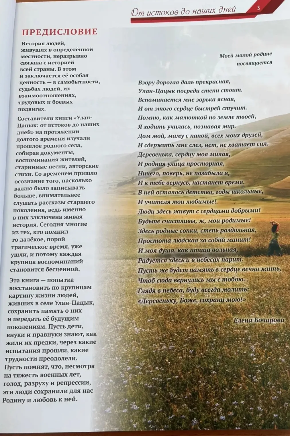 По итогу 2025 года МБОУ Улан-Цацыкская ООШ участвовала в Губернаторском конкурсе для ТОС "Решаем сами". Грантовое направление Россия – Родина моя! Директор МБОУ Улан-Цацыкксая ООШ Бабуева Цырен-Ханда Долсоновна побывала в МКУ РКОиДМ, подарив свою книгу. Цырен-Ханда Долсоновна рассказала нам немного о своей книге. –«Шумное село угасает и мы, нынешние жители, всеми силами стараемся сохранить нашу малую родину. Все меньше становиться живых носителей истории села, народных традиций и местных обычаев. Для сохранения исторической памяти, мы издали книги "Улан-Сэсэг". Создали на базе музейной комнаты "Улан-Цацыкской" основной школы, постоянно действующую, музейную экспозицию, посвященную истории села. Сохранили историческую память, посредством издания книги.». Спасибо Вам Цырен Ханда-Долсоновна, за то что вы гордитесь своим селом!. Поздравляем МБОУ Улан-Цацыкскую ООШ с изданием памятной книги «Улан-Сэсэг».