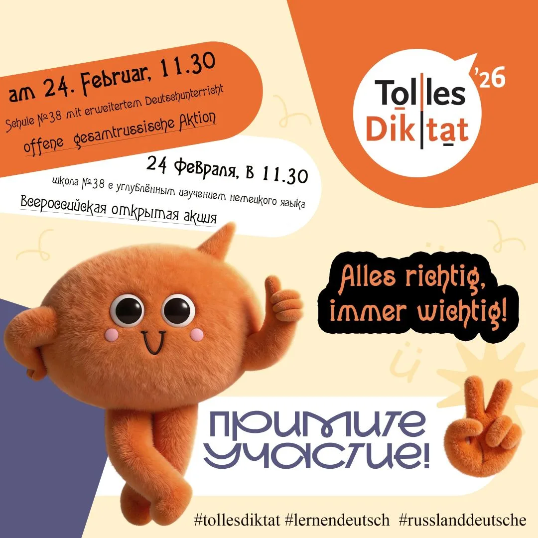 🥳 24 февраля в нашей школе пройдет традиционная Всероссийская открытая акция «Tolles Diktat (классный диктант) – 2026».