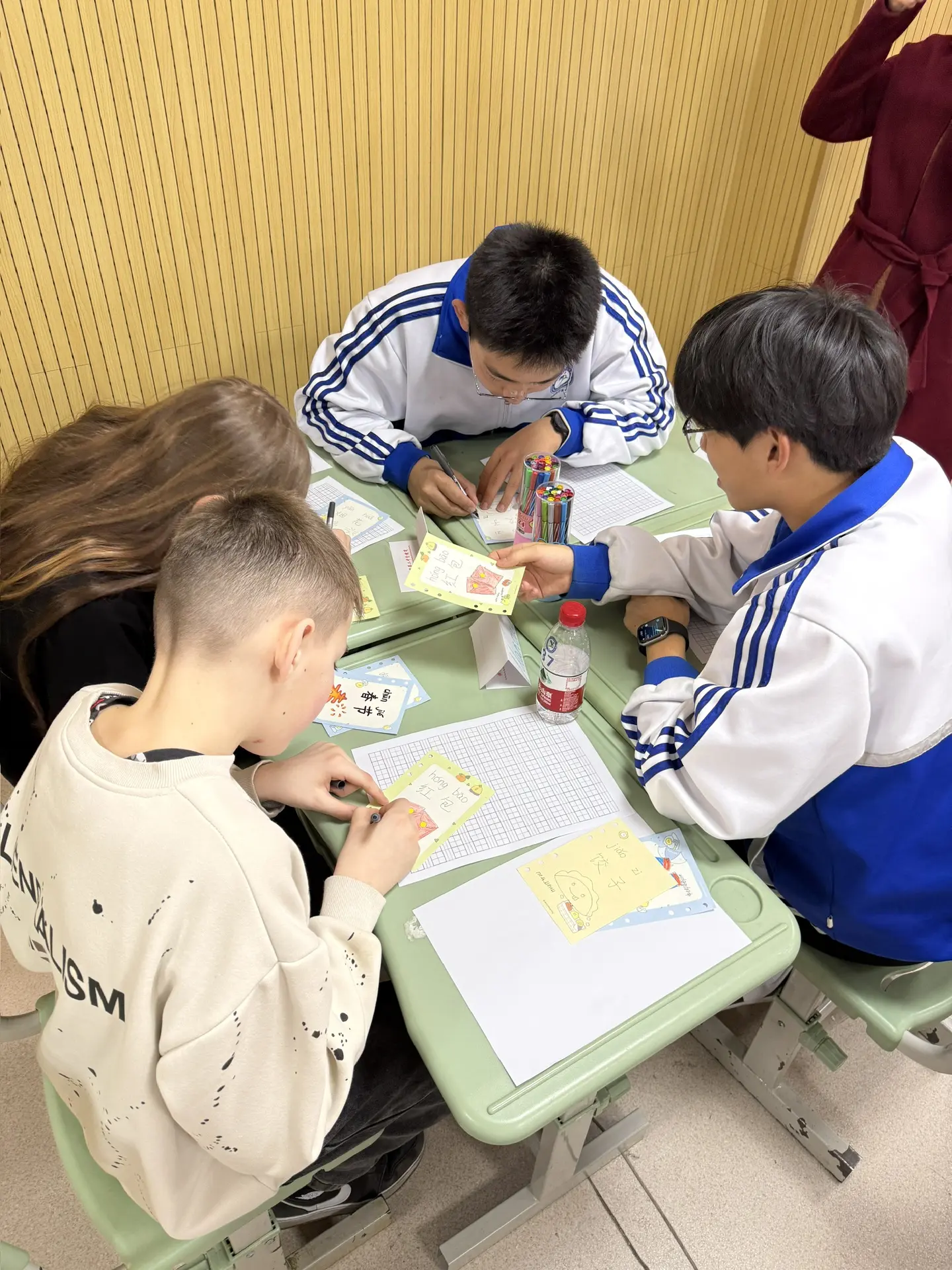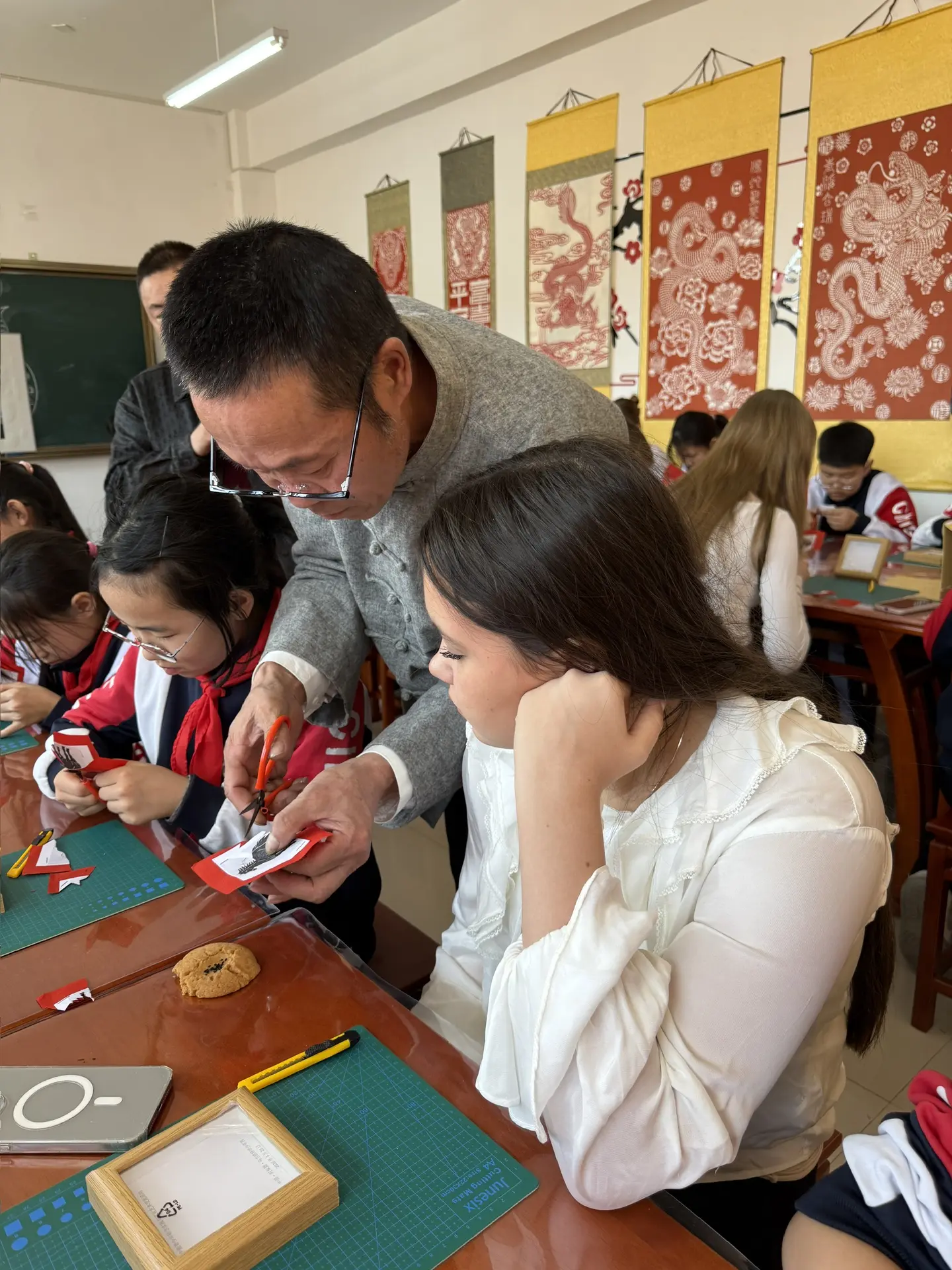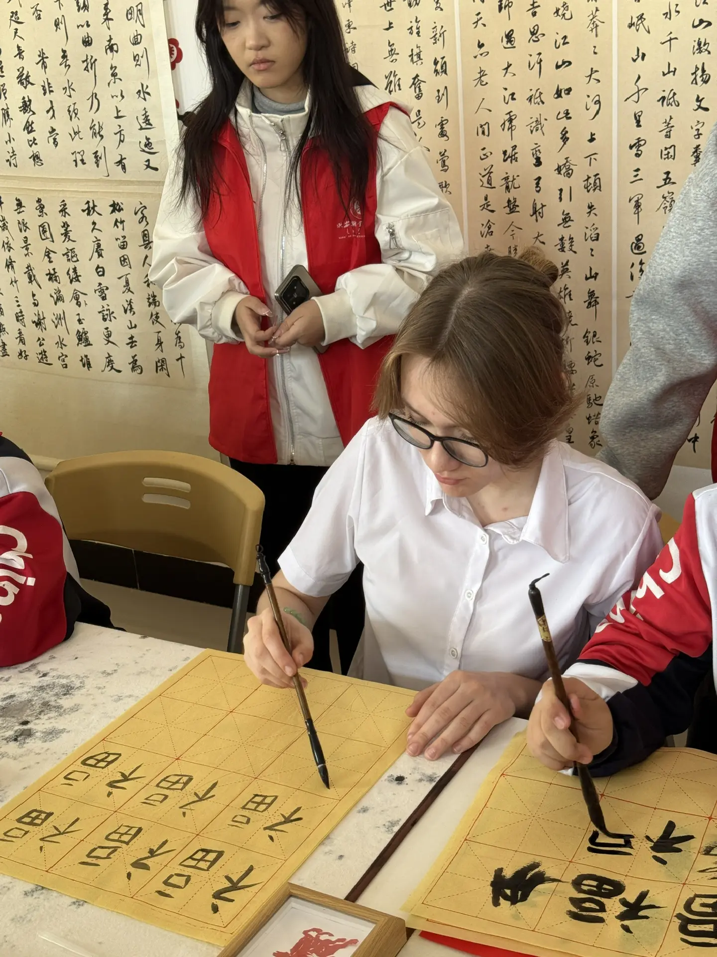 Пионеров ученики имели возможность поупражняться в различных китайских традиционных искусствах: каллиграфии, вырезке из бумаги, изготовлении батика, кулинарии.