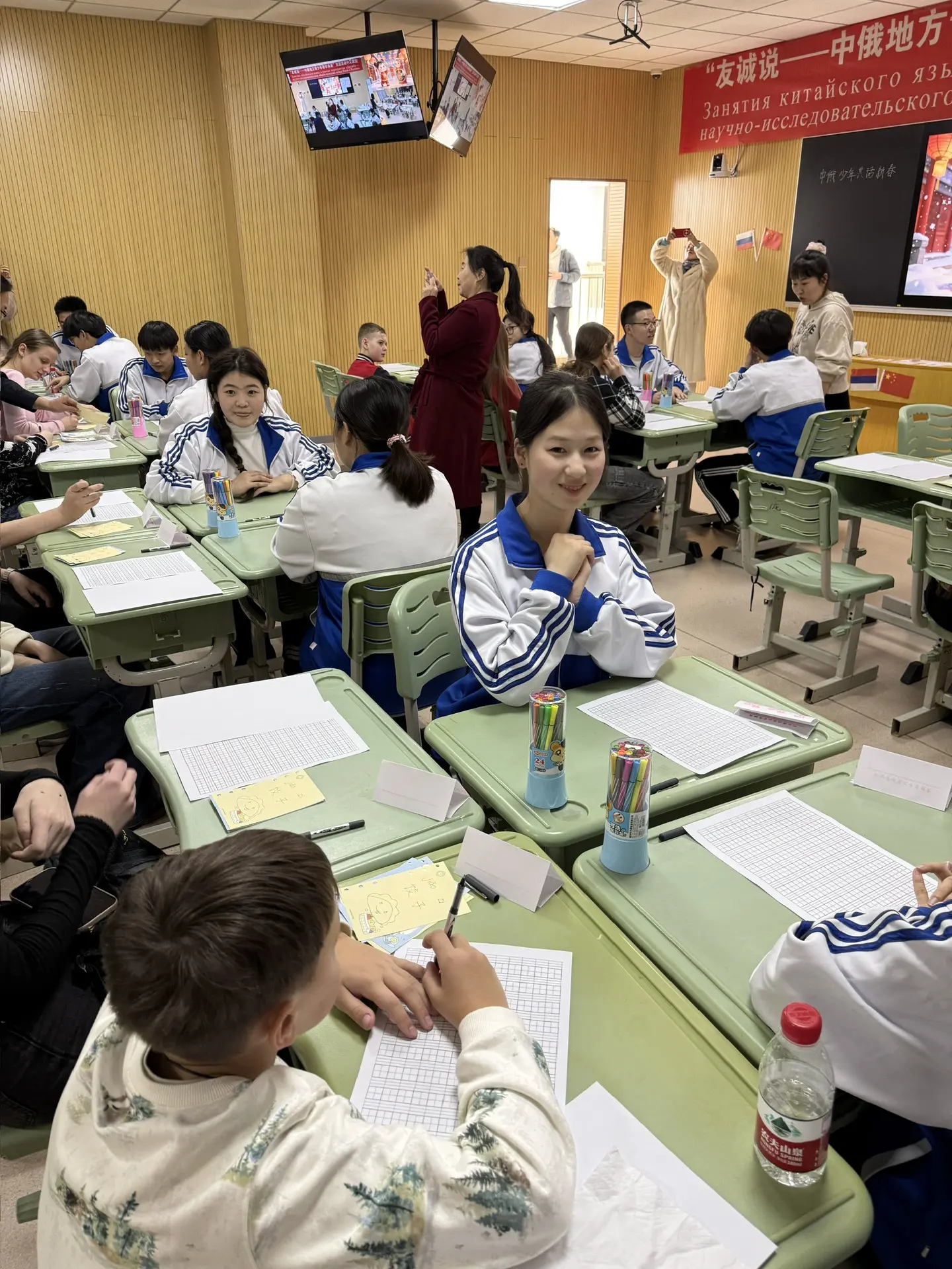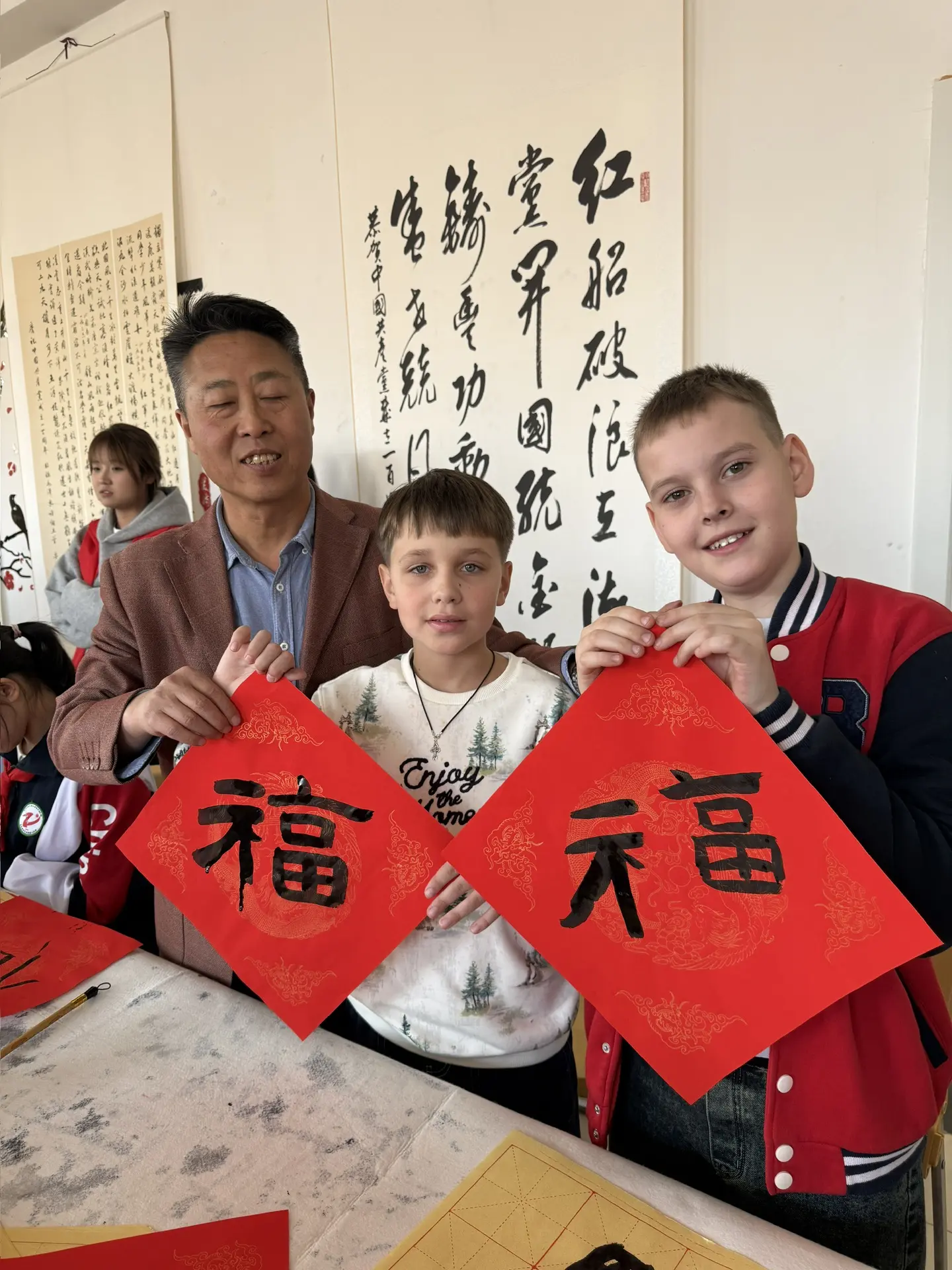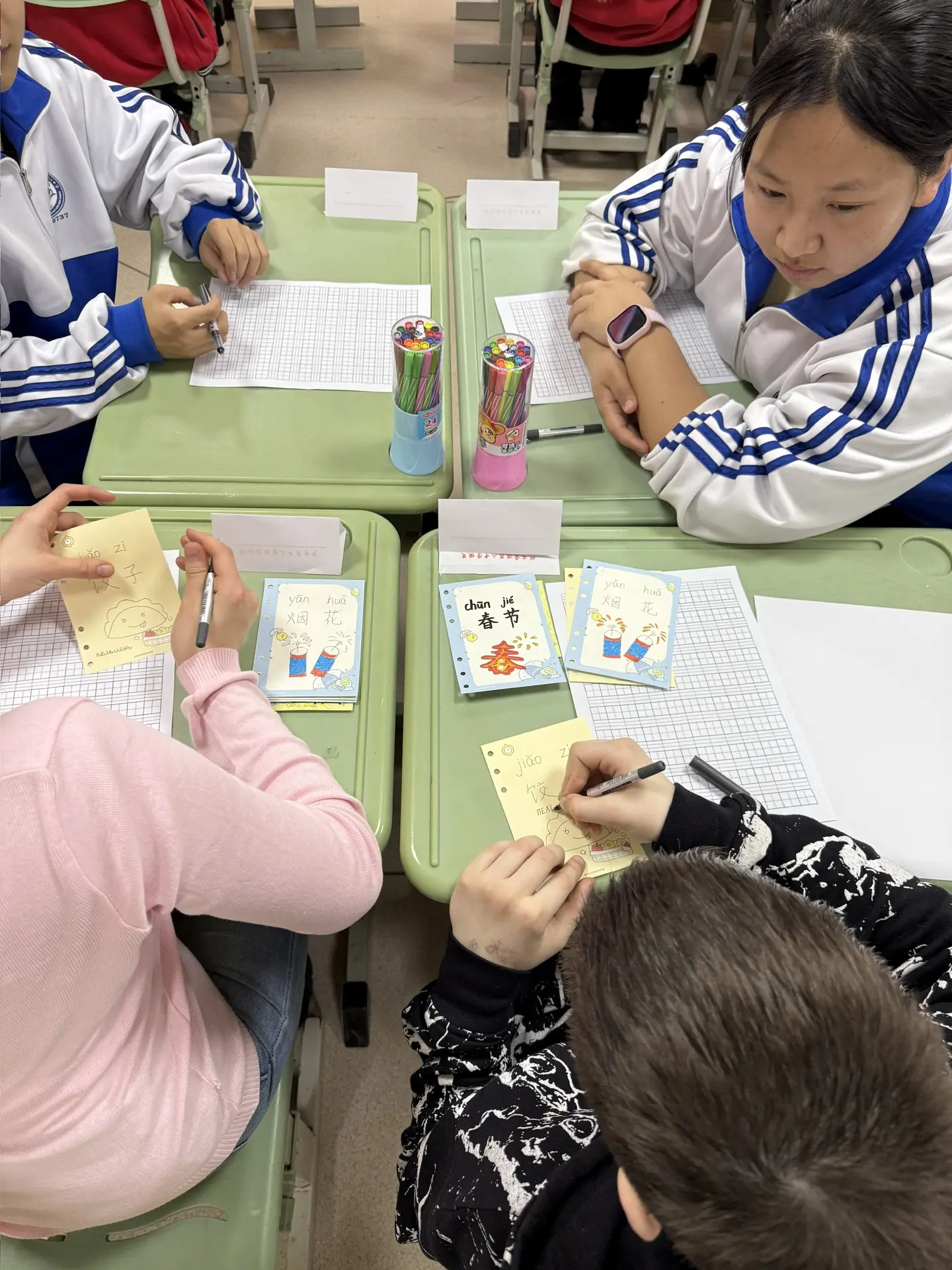 Пионеров ученики имели возможность поупражняться в различных китайских традиционных искусствах: каллиграфии, вырезке из бумаги, изготовлении батика, кулинарии.