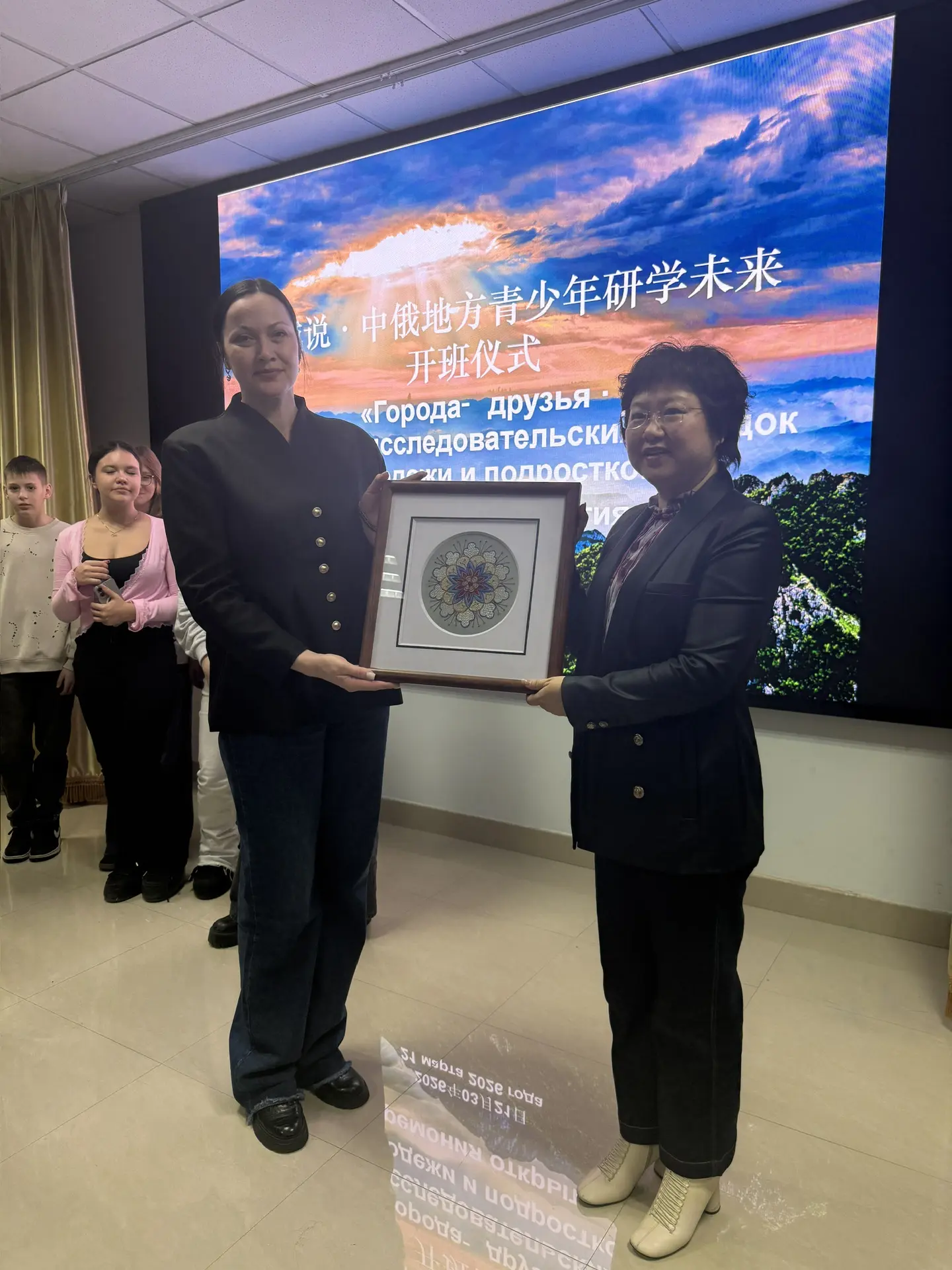 На церемонии присутствовала первый заместитель председателя Комитета образования городского округа "Город Чита" Быкова Светлана Владимировна. Светлана Владимировна выразила надежду на долгое и плодотворное сотрудничество, взаимнообменов между двумя городами.