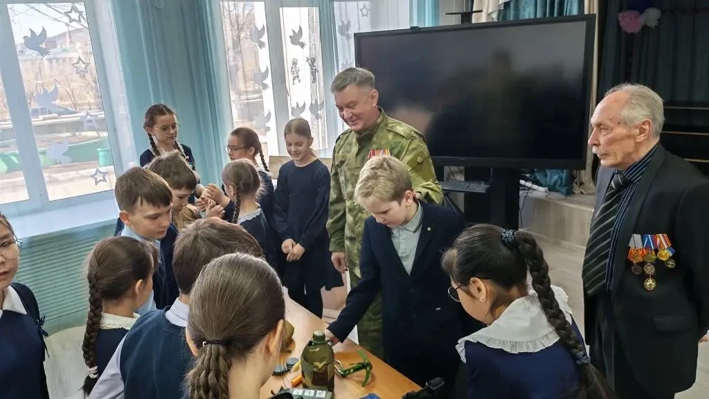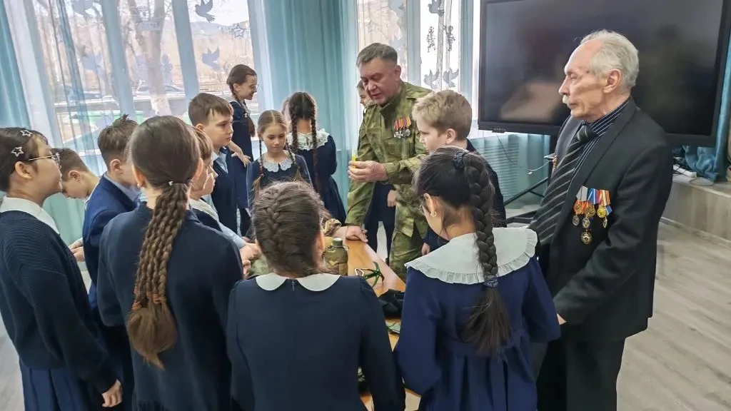 Самым интересным моментом стала наглядная часть встречи. Ветераны показали ребятам предметы экипировки и вещи, необходимые в боевых условиях. Дети смогли не только услышать, но и увидеть, с чем приходится иметь дело тем, кто стоит на страже нашей безопасности.