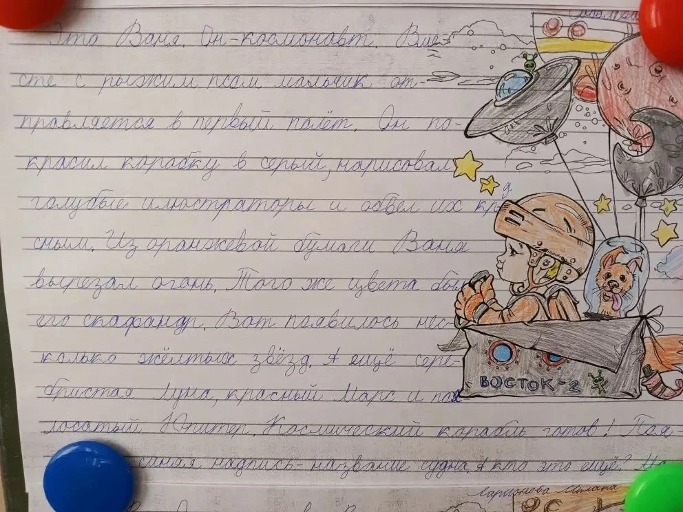 Заключительным этапом такой космический недели стало списывание текста и раскрашивание иллюстрации по подсказкам, спрятанным в этом тексте.