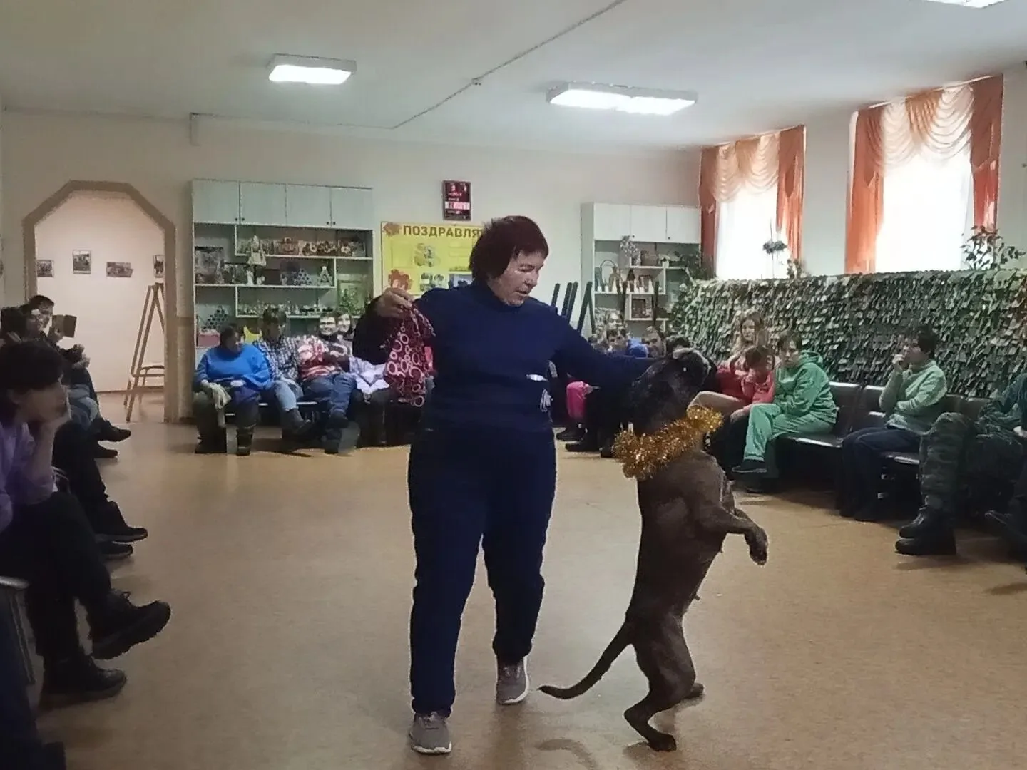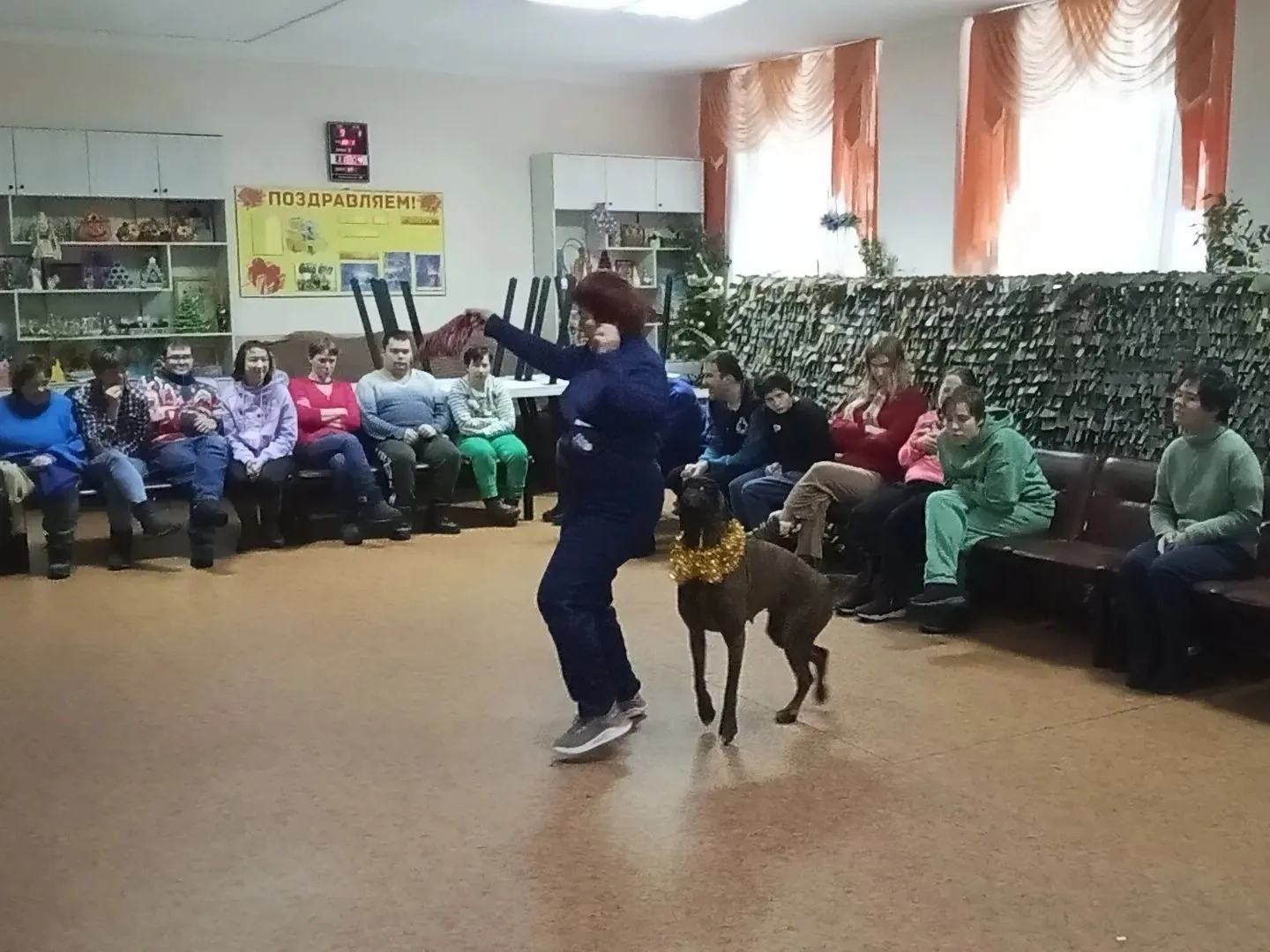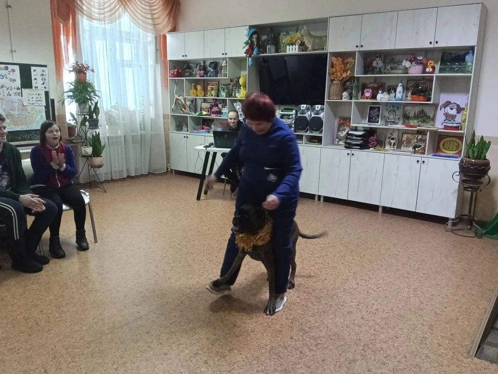 В эти праздничные дни доцент кафедры ветеринарно-санитарной экспертизы Светлана Юрьевна Узелкова вместе со своей замечательной собакой, боксёром Вип-Бокс Кадриль подарили новогоднее представление постояльцам Красноперекопского психоневрологического интерната.