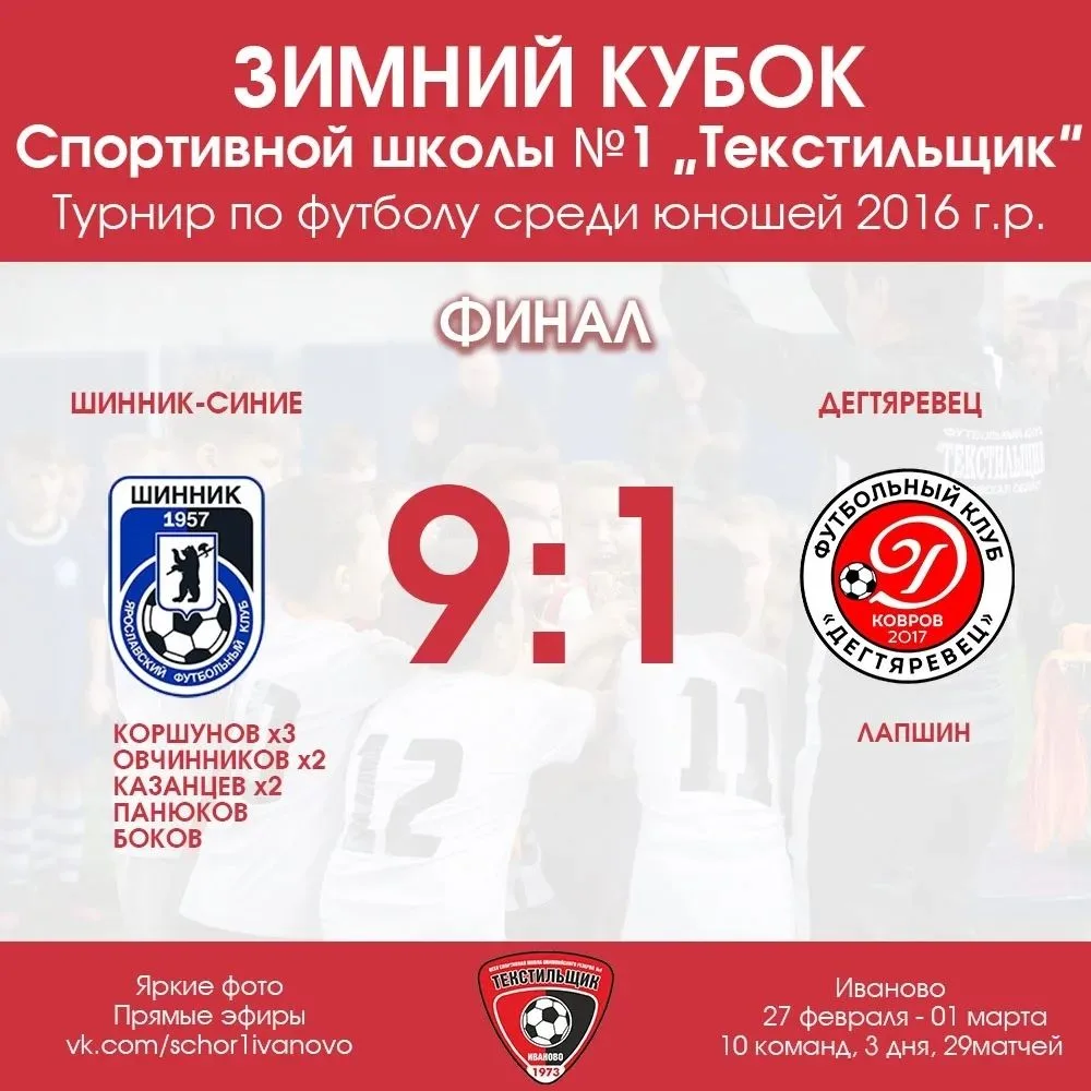 🏆Ученик 3 "А" класса "Центра образования - школа 30" Кокуев Илья в составе команды спортивной школы "Шинник" 2016 года рождения стал чемпионом в турнире по футболу "Зимний кубок СШ №1 "Текстильщик" (г. Иваново).