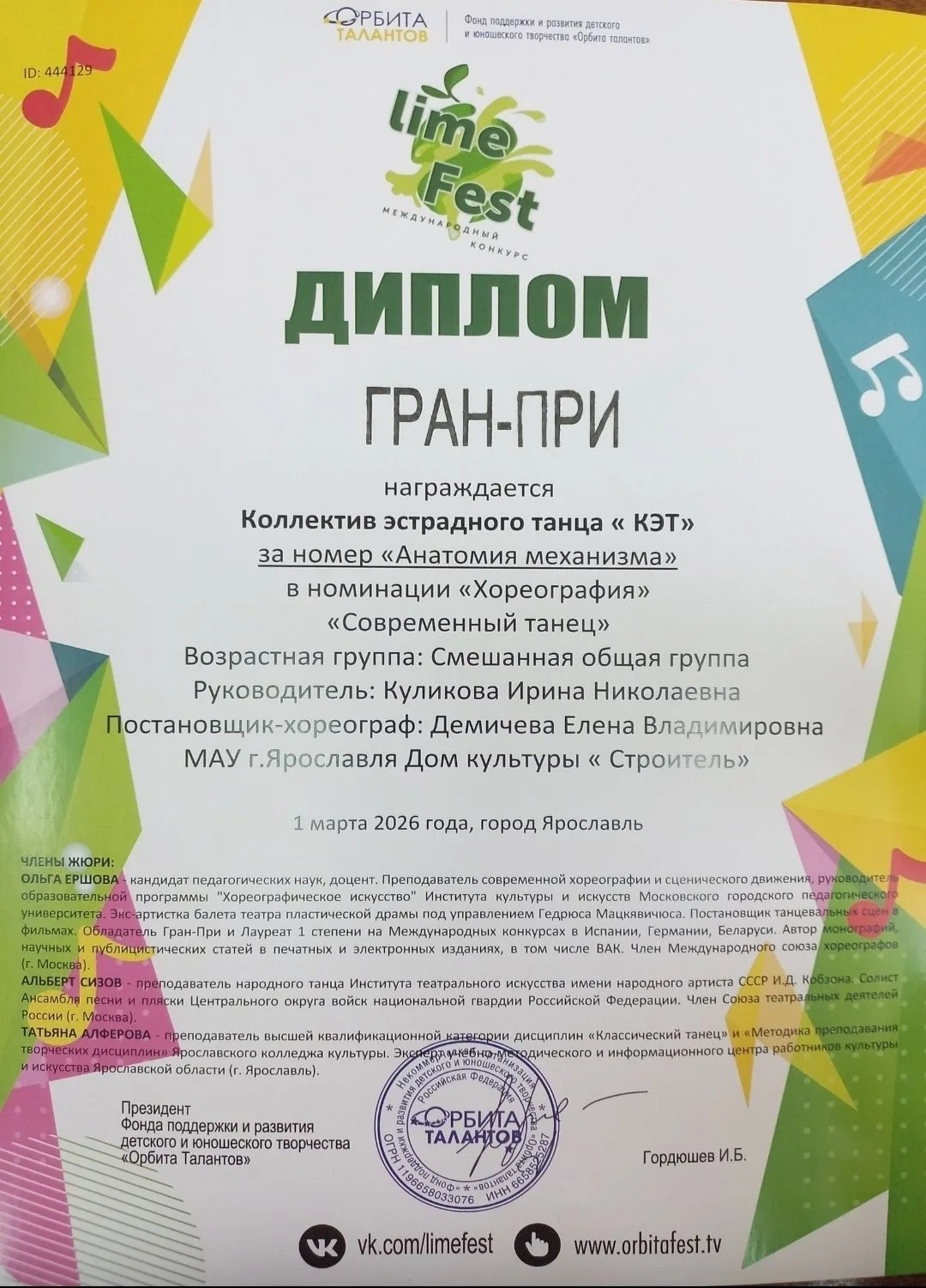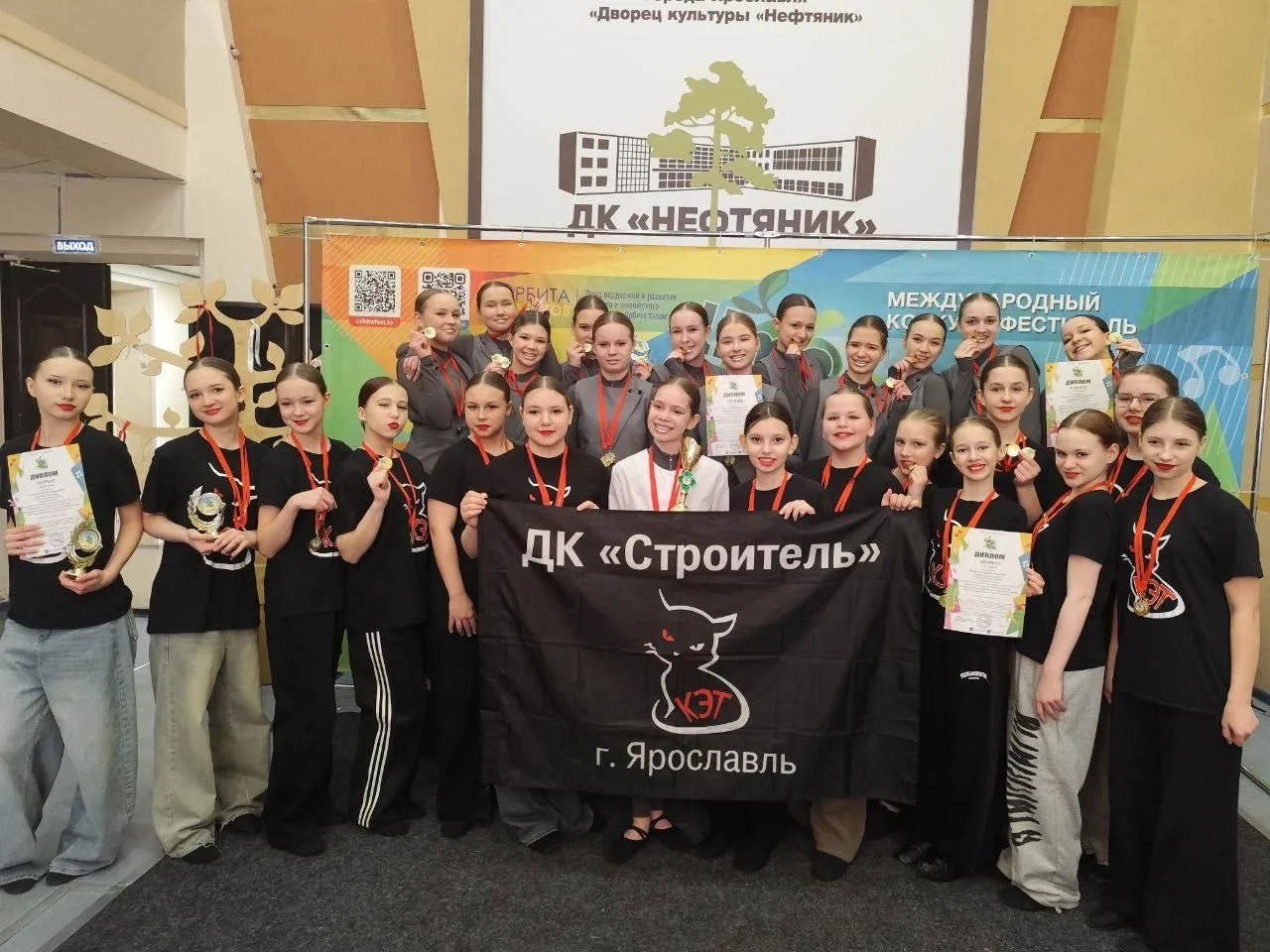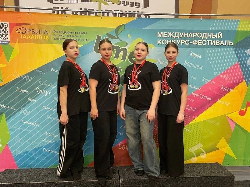 1 марта наши ученицы из 7 «А» — Полина Русакова, Алина Короткова, Алиса Замахова, Лиза Мелихова; 7 "Б" - Ирина Беляева — вместе с коллективом «Кэт» выступили на международном конкурсе‑фестивале «Lime Fest»!💃