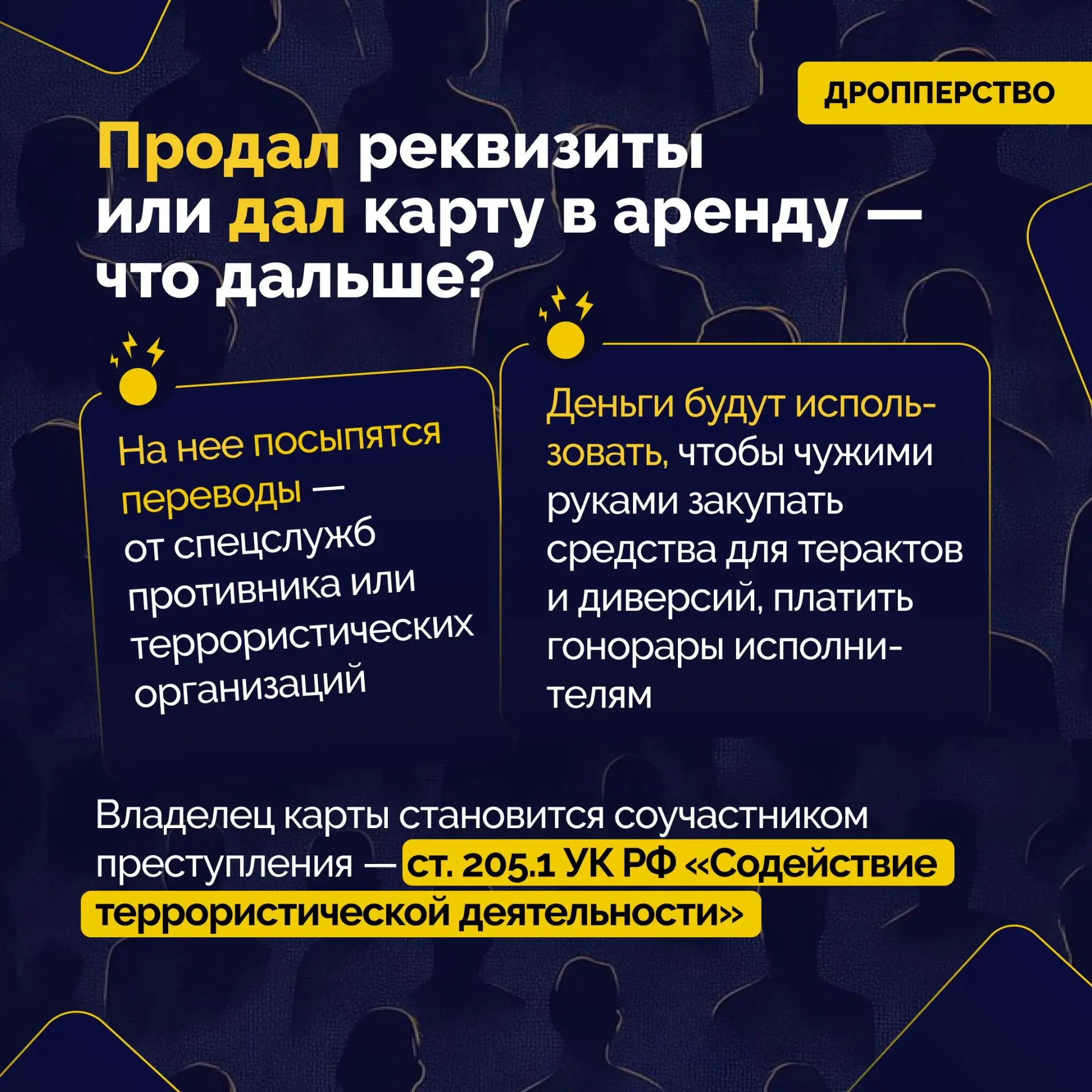 Сегодня терроризм — это не только оружие и взрывчатые вещества. Поджоги оборудования на железнодорожных путях, распространение фотографий военных объектов и даже прославление школьных стрелков в интернете становятся новыми формами угроз. Важно осознавать, что подобные задания нередко поручают детям и подросткам через интернет. Цель злоумышленников ясна: создать «шум» и привести к жертвам.