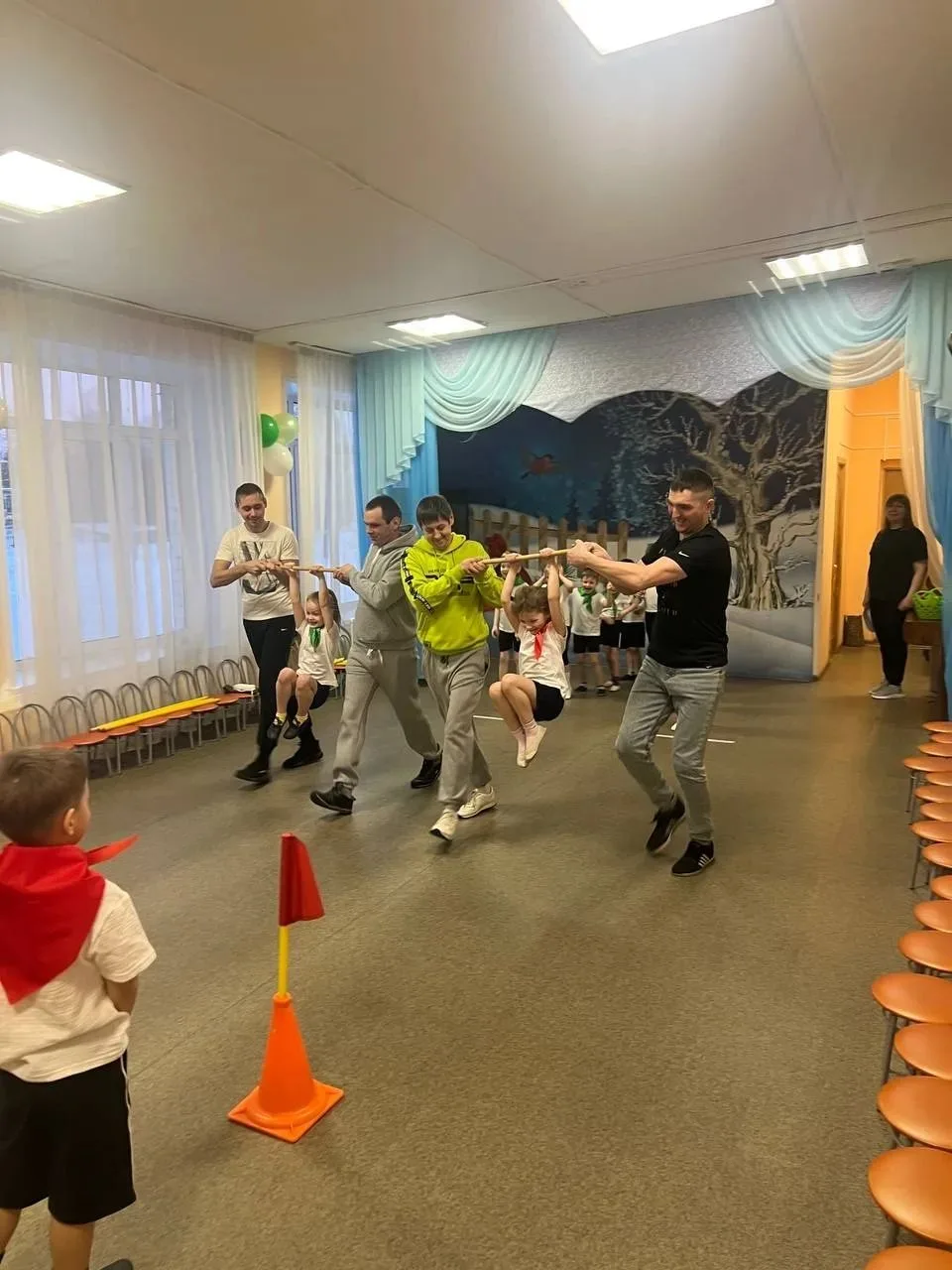 💪 Соревнования превратились в настоящий праздник спорта, силы и смеха. Мы убедились, что наши папы умеют всё: быть быстрыми в эстафетах, ловкими в конкурсах и, самое главное, дружными в командной игре.