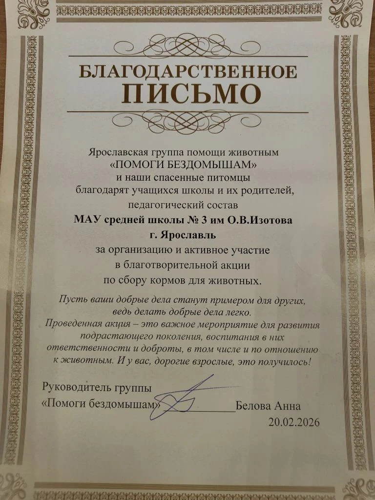 В "Центре образования - Школа №3 имени Олега Васильевича Изотова" прошла традиционная благотворительная акция по сбору корма для бездомных животных! 🐶🐱🦴🍗