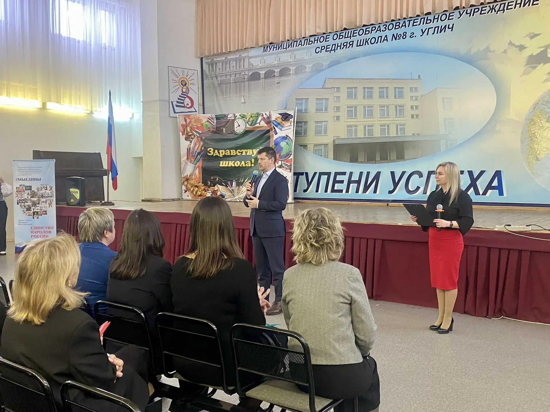На собрании присутствовали педагоги, сотрудники, а также представители родительской общественности. С приветственным словом перед собравшимися выступили депутат Ярославской областной Думы М.С. Вахруков и заместитель Главы Угличского муниципального округа О.В. Задворнова.