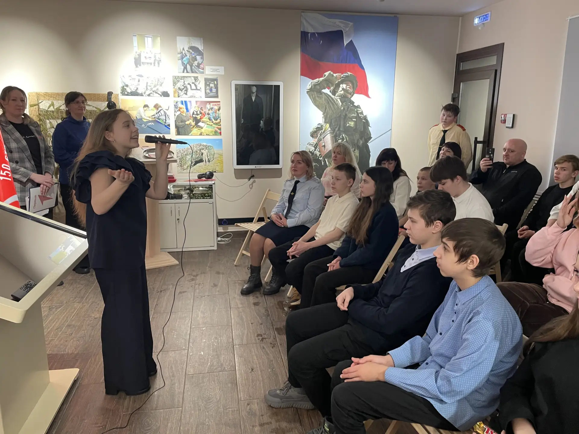 Ребята торжественно произнесли обещание на верность Российской Федерации, а праздничную атмосферу своим прекрасным пением создала Варвара Зайчикова, обучающаяся ЦО "Средняя школа №4".