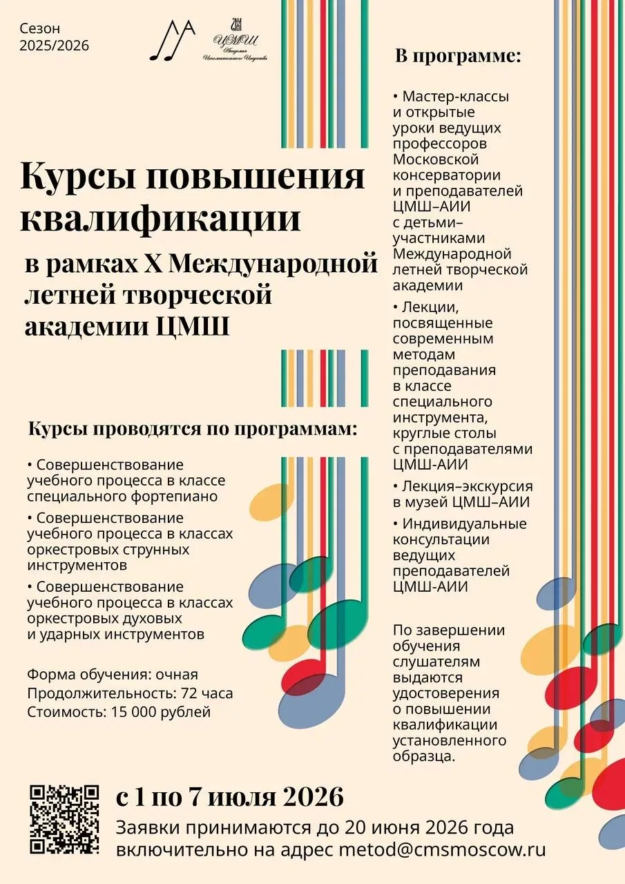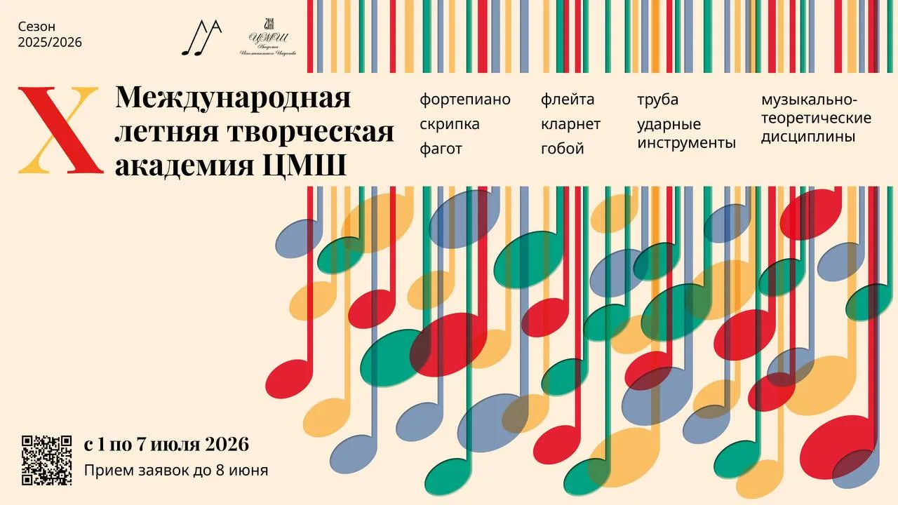 Приглашаем всех желающих принять участие в X Международной летней творческой академии ЦМШ 2026, которая пройдет с 1 по 7 июля 2026 года!