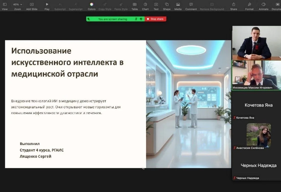 - Лященко Сергей («Использование ИИ в медицинской отрасли»);