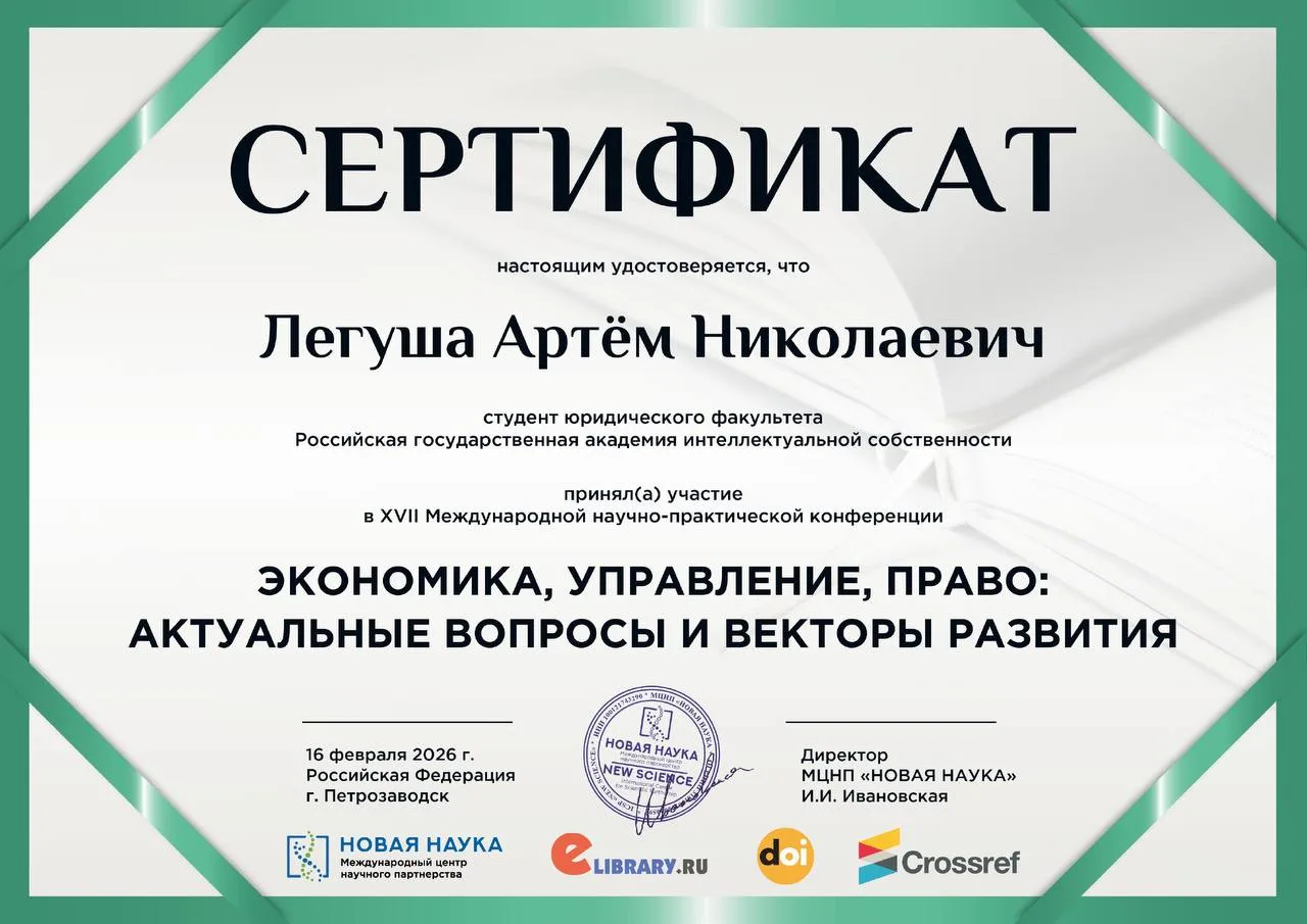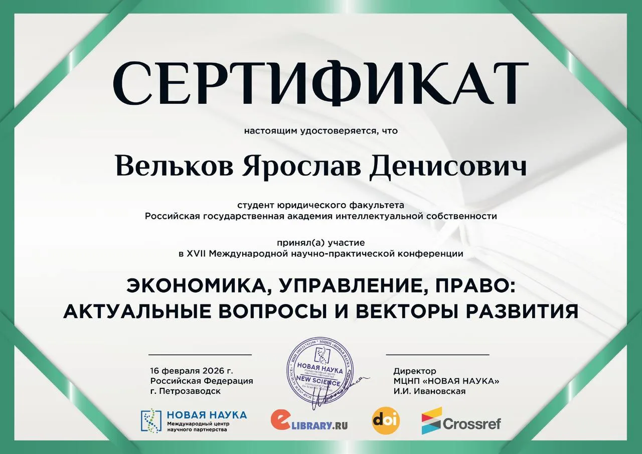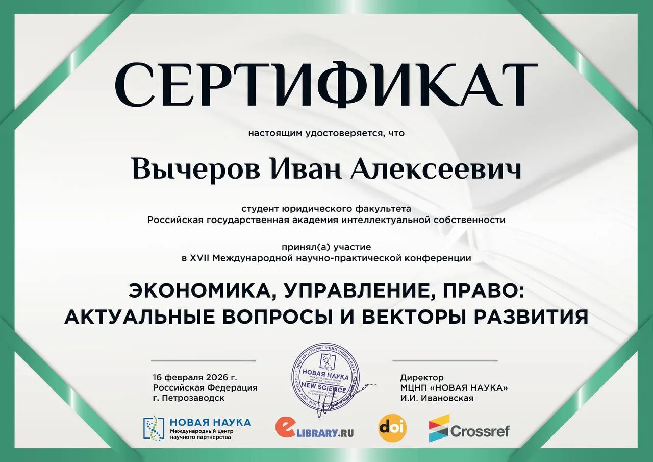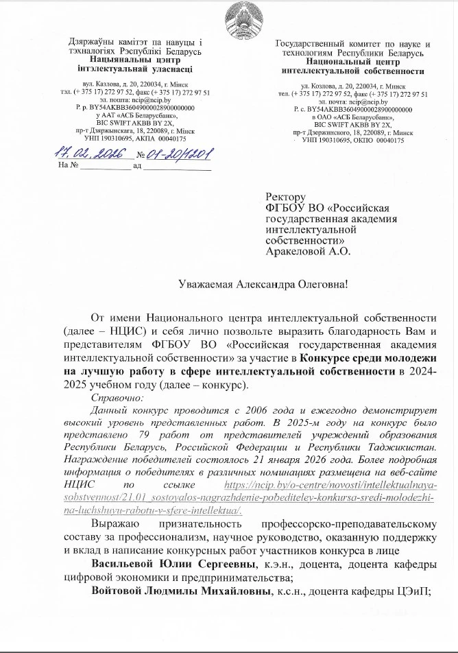 4 марта 2026 года на коллегии Роспатента состоялось торжественное награждение победителей VI Международного конкурса молодых ученых в сфере интеллектуальной собственности «Интеллект». Ими стали: