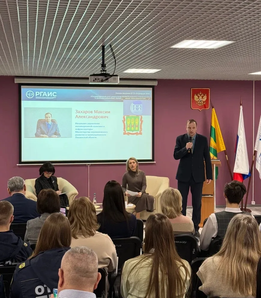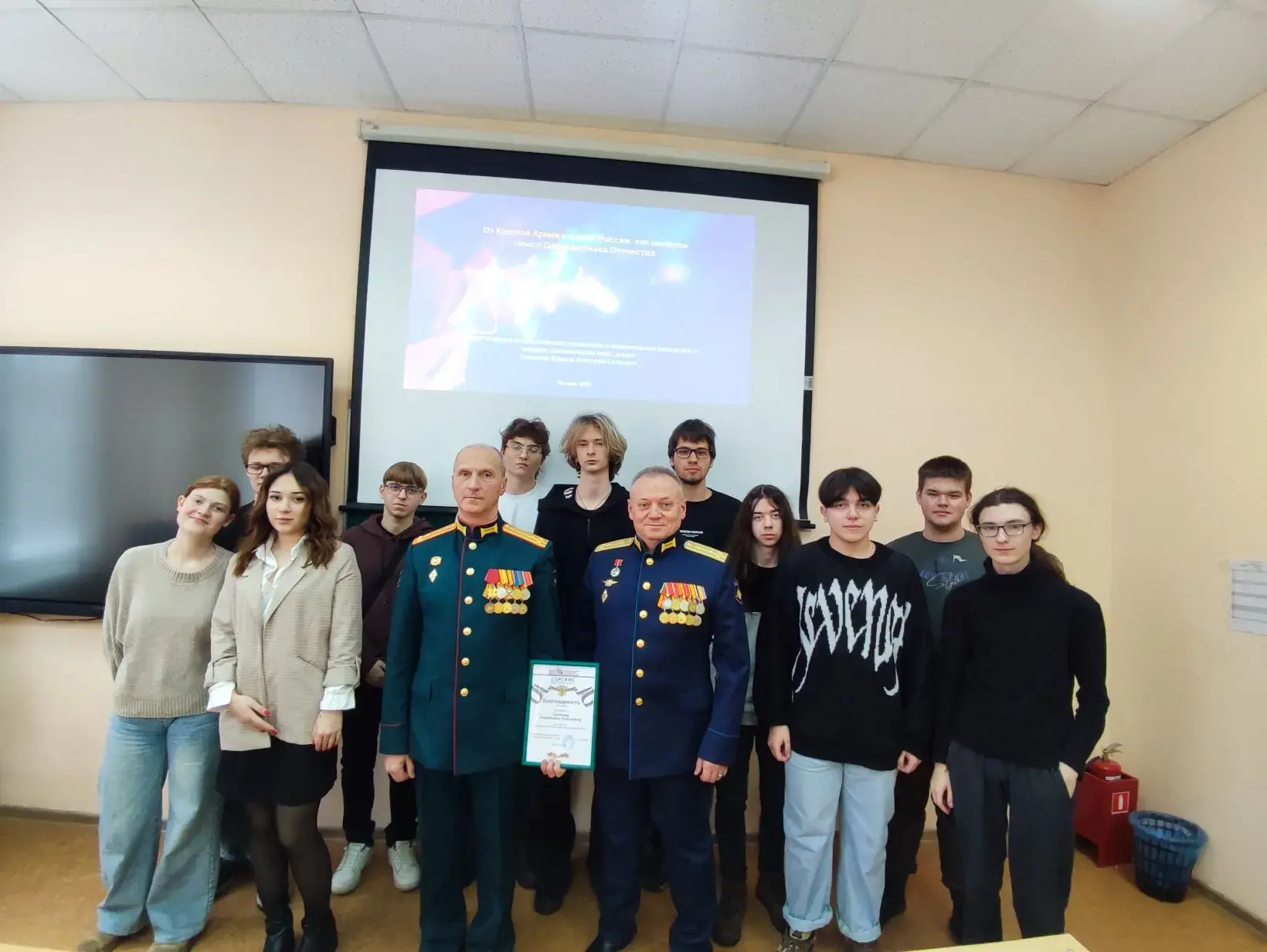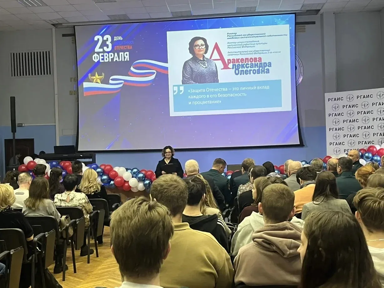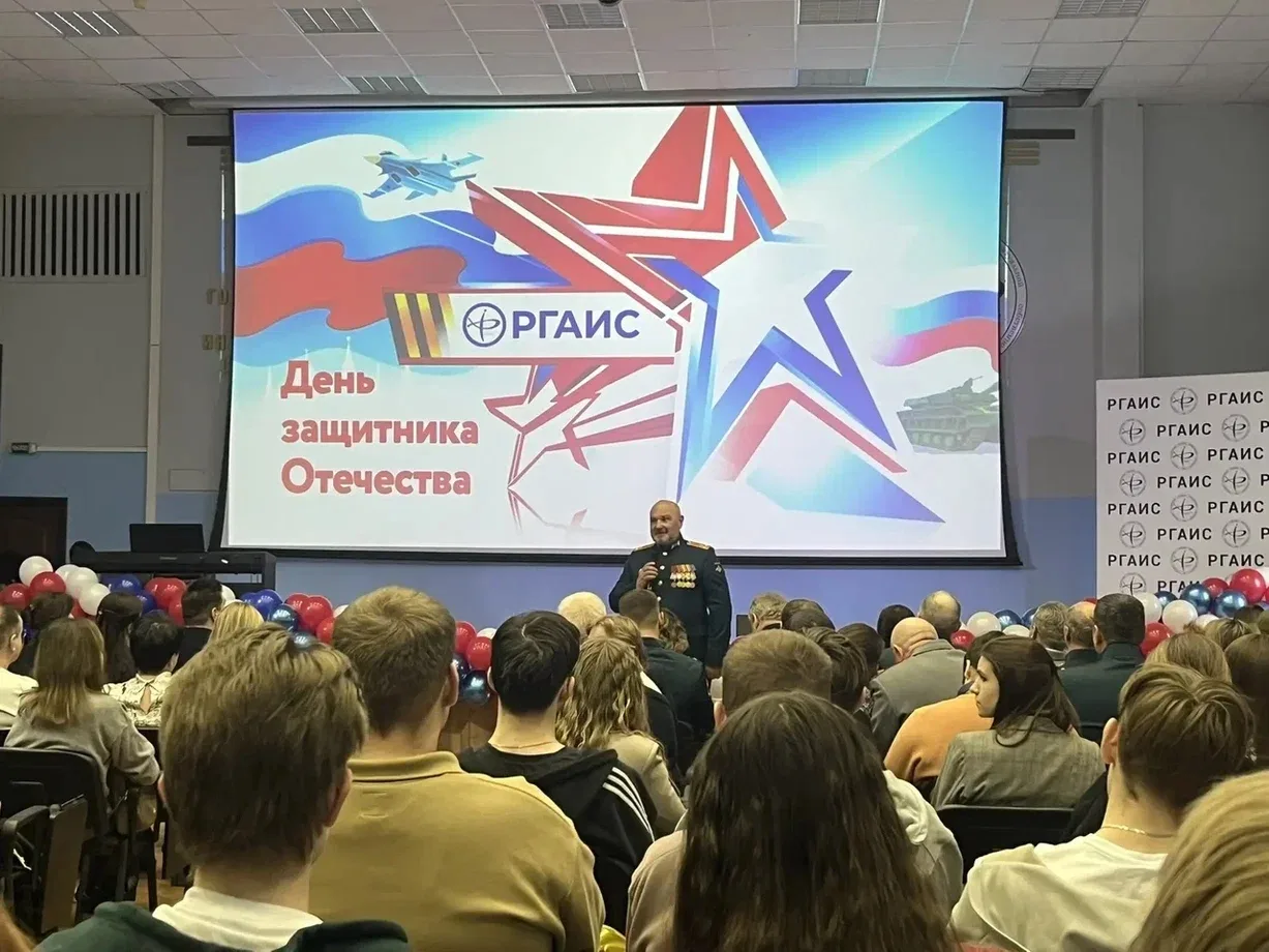 17.02.2026 в преддверии Дня защитника Отечества студенты 3 курса РГАИС прослушали просветительскую лекцию «Герои СВО. Первый Герой России на СВО Нурмагомед Энгельсович Гаджимагомедов», которую провела студентка 3 курса Юридического факультета, Председатель и руководитель медиа СНО – Алёна Колодяжная.