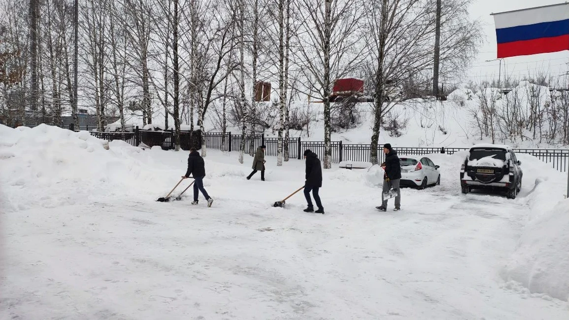 Студенты и сотрудники быстро справились с нелегким испытанием: очистили тротуар и подъездные пути, стоянку и прилегающую территорию.