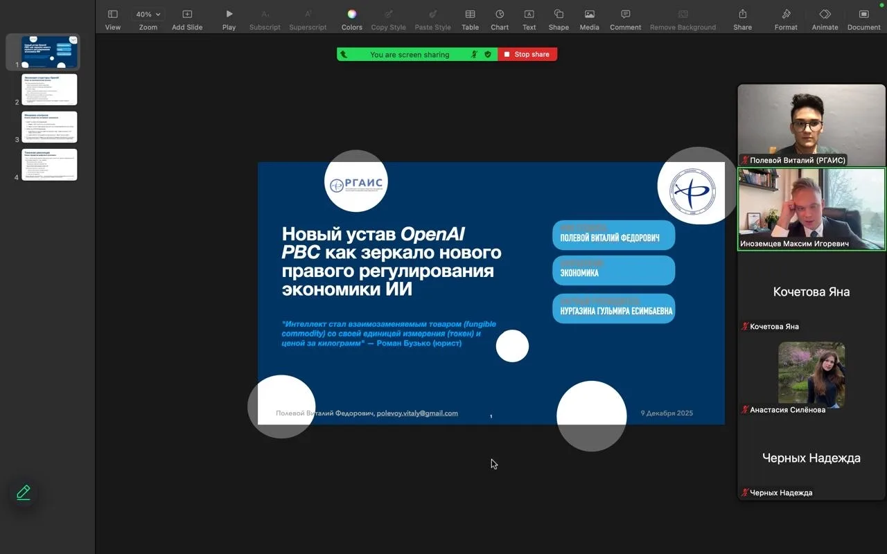 - Полевой Виталий («Новый устав OpenAI PBC как зеркало нового правового регулирования экономики ИИ»);