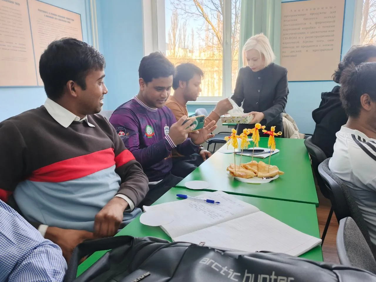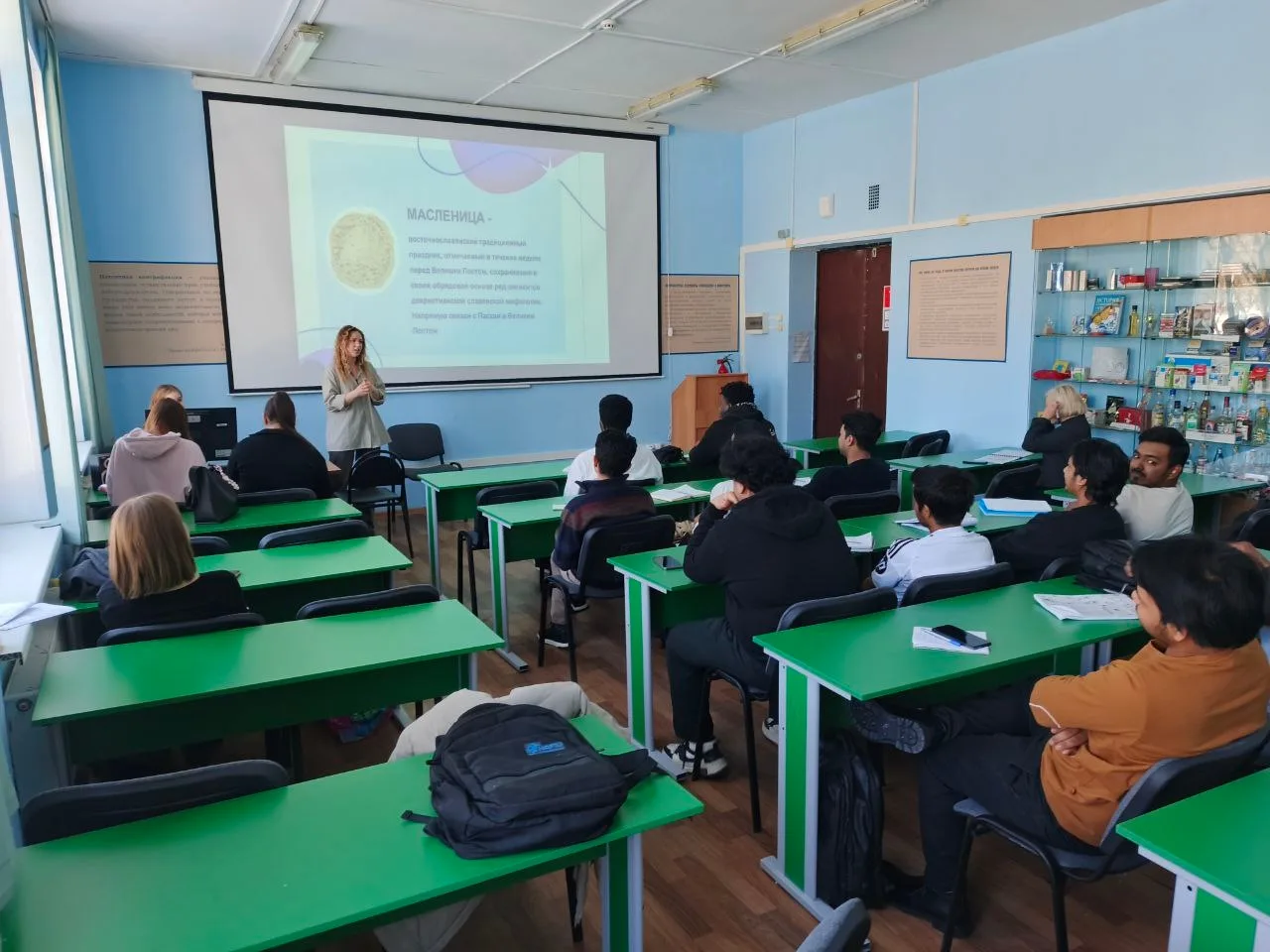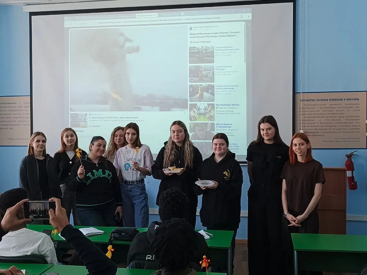 🥞 Участники обсудили историю и обычаи праздника, а также особенности национальной кухни. Иностранные студенты увлеченно отвечали на вопросы викторины, посвященной масленичным обрядам, познакомились с тематическими пословицами и поговорками, а также приняли участие в мастер-классе по созданию масленичной куклы. Кульминацией мероприятия стала дегустация блинов - главного символа масленичной недели! 🥞