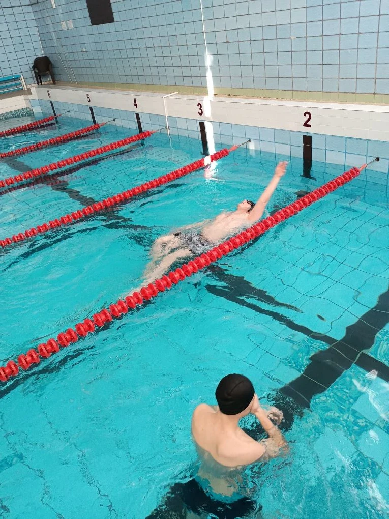 18 февраля 2026 студенты 2 курса Юридического факультета РГАИС сдавали нормативы ГТО по плаванию в бассейне «Металлург». Принимал нормативы преподаватель физкультуры Дмитриев Леонид Дмитриевич.