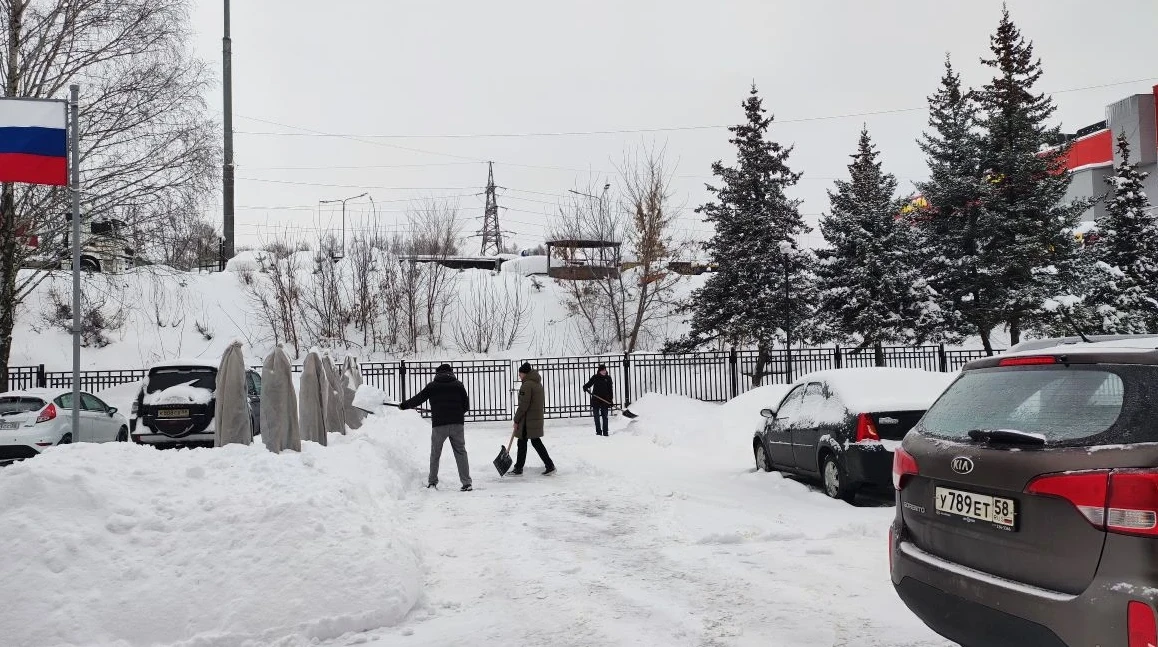 13 января, успешно сдав экзамен, студенты группы ЮР-511 ФП активно вышли на уборку снега из-за аномально снежного января, пришедшего в Пензу.