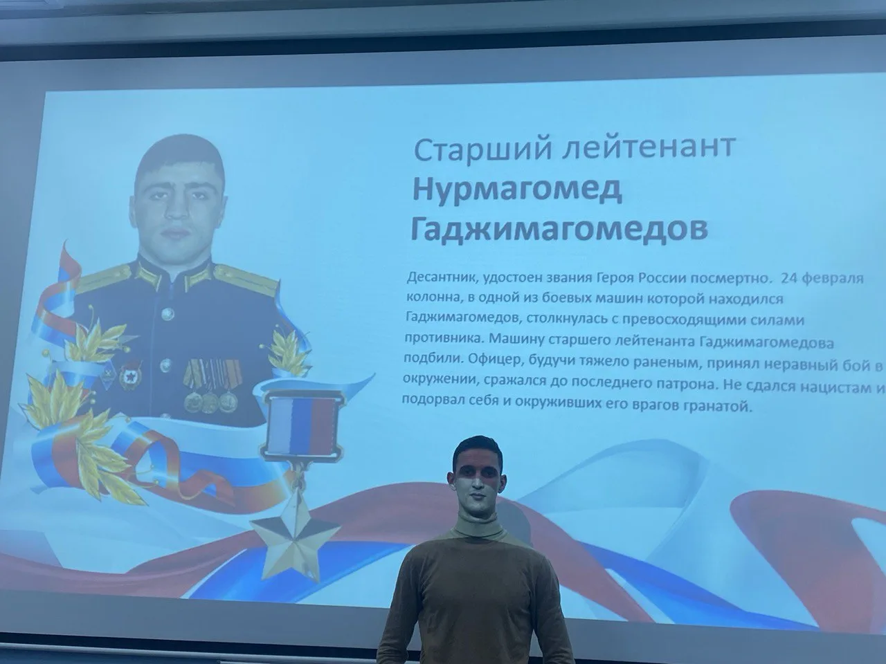 🇷🇺 Из лекции студенты узнали поразительные факты о жизни и подвиге Нурмагомеда Гаджимагомедова: