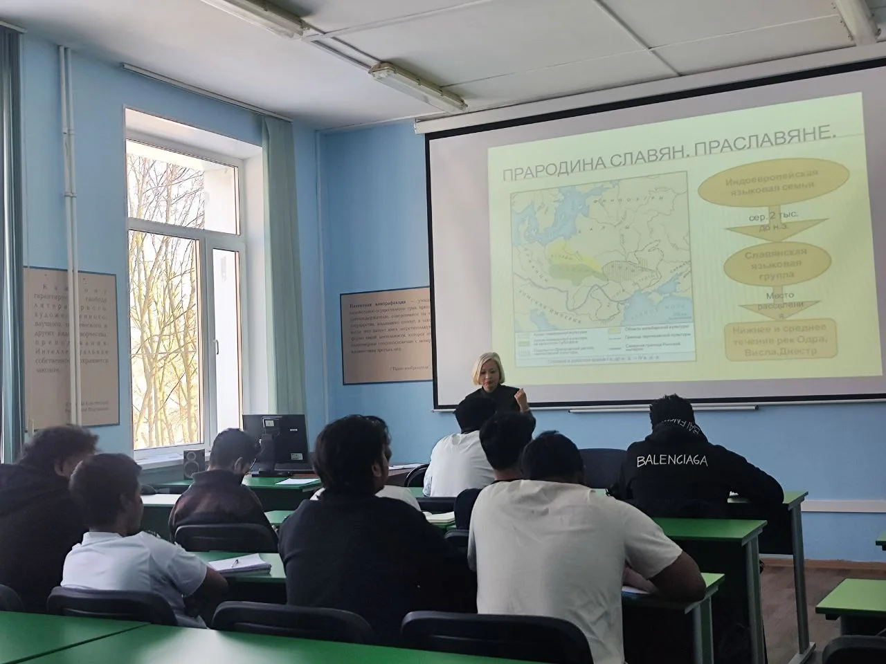 На лекции обучающиеся вместе с преподавателем погрузились в богатую историю русского языка.