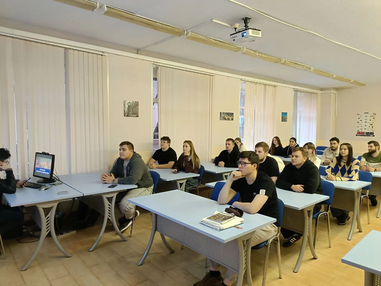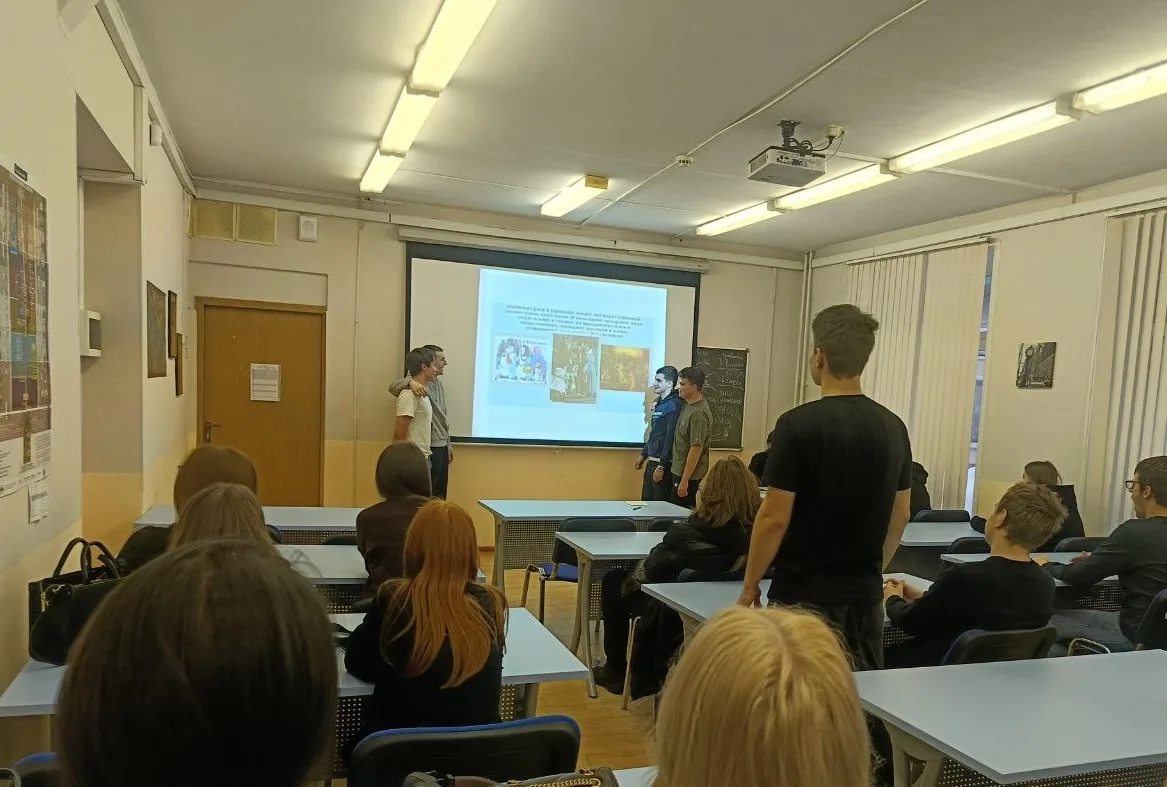 12 января студенты 1 и 2 курса стали участниками кинопросмотра «ДНК России. Государство-цивилизация», рекомендованного Российским обществом «Знание». Последующее обсуждение фильма прошло под руководством преподавателей кафедры ОД Галдобиной С.В. и Штехман Е.А.