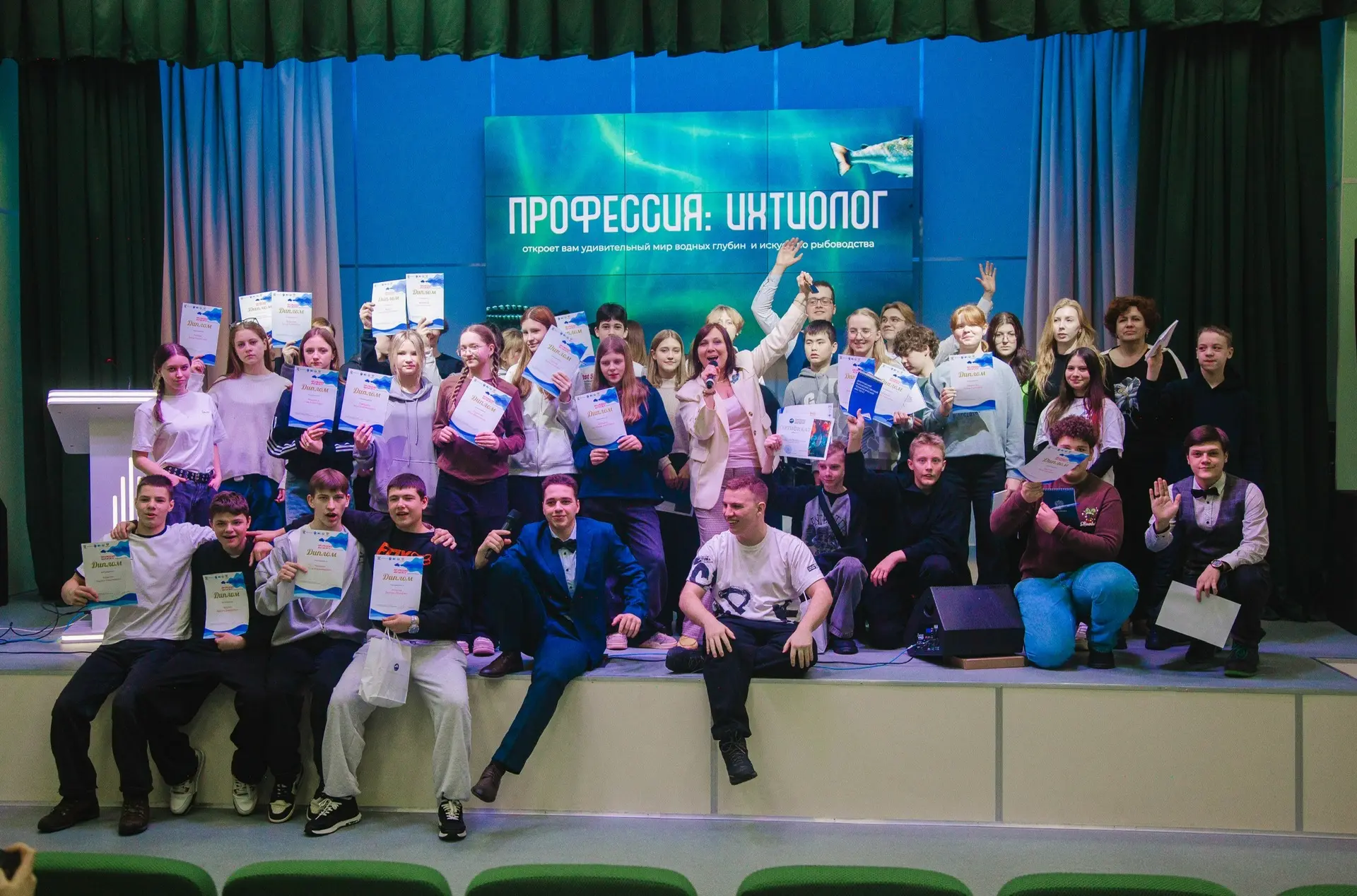 Для вручения медалей победителям и призерам по компетенциям из блоков «Сельское хозяйство и аграрные технологии», «Технологии индустрий природопользования» и «Технологии образования» на сцену был приглашен заместитель начальника учреждения — начальник Северо-Западного филиала ФГБУ «Главрыбвод» Дмитрий Шмидт.