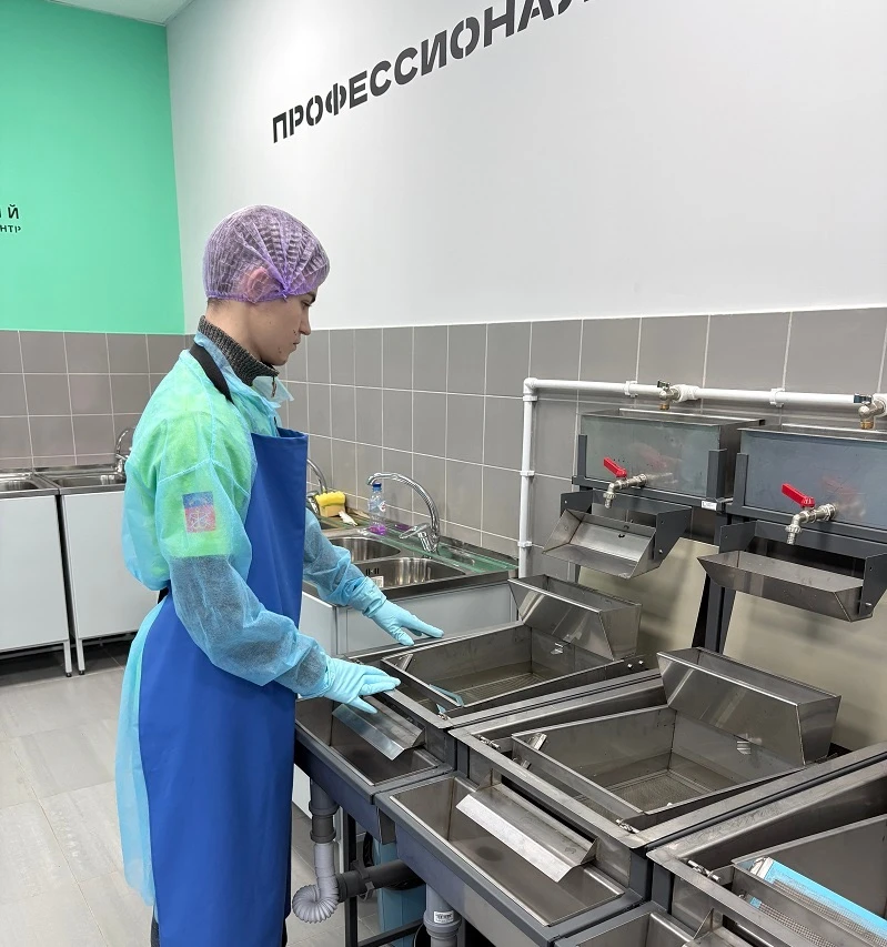 Компетенция «Обработка водных биоресурсов»:выполняются задания по производству полуфабрикатов, филе пиленгаса, пресервов из сельди и консервов из шпрот).