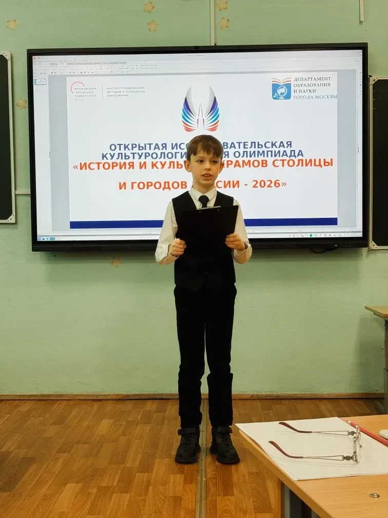 Ученик 4 «М» класса Илья К. принял участие в открытой исследовательской культурологической олимпиаде «История и культура храмов столицы и городов России-2026» в номинации «Видеосъёмка».