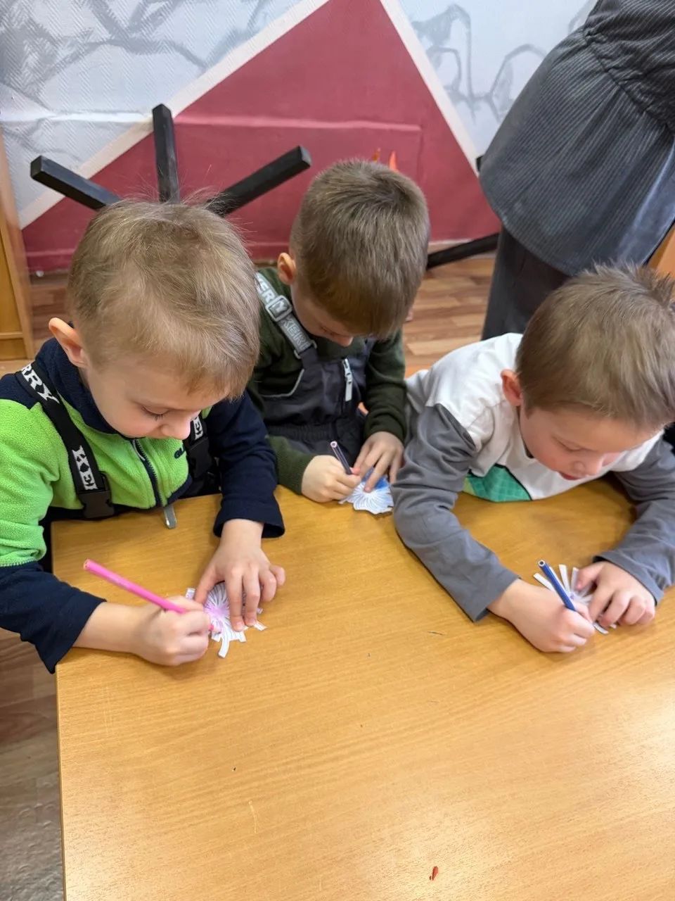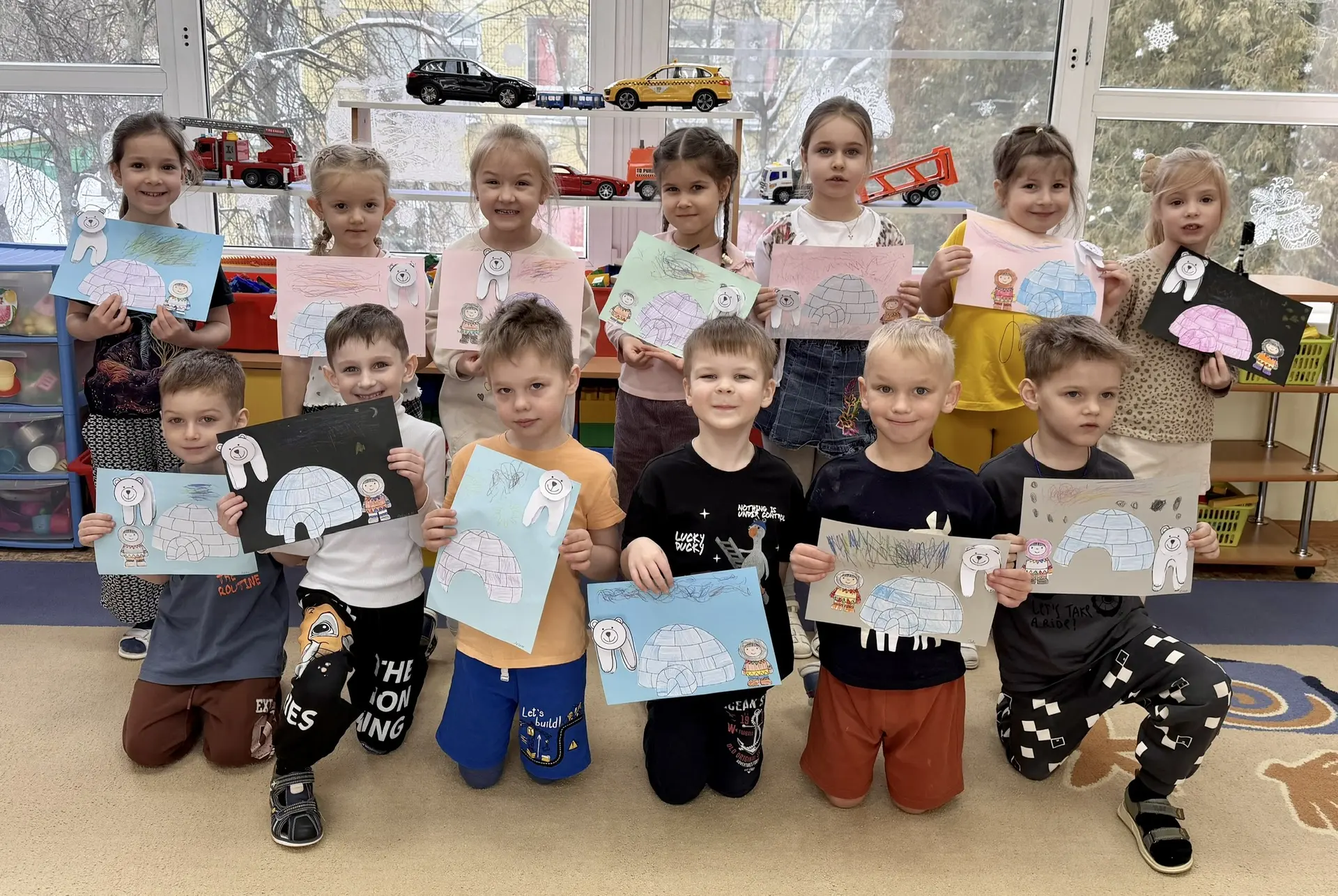 🔹В корпусе 15 (Алтуфьевское ш., 40) праздник получился особенно насыщенным. Воспитанники подготовительной группы создали трогательные портреты пап, стараясь передать не только внешнее сходство, но и характер — доброту, силу и уверенность. Дети с гордостью рассказывали, какие у них смелые и надёжные папы.