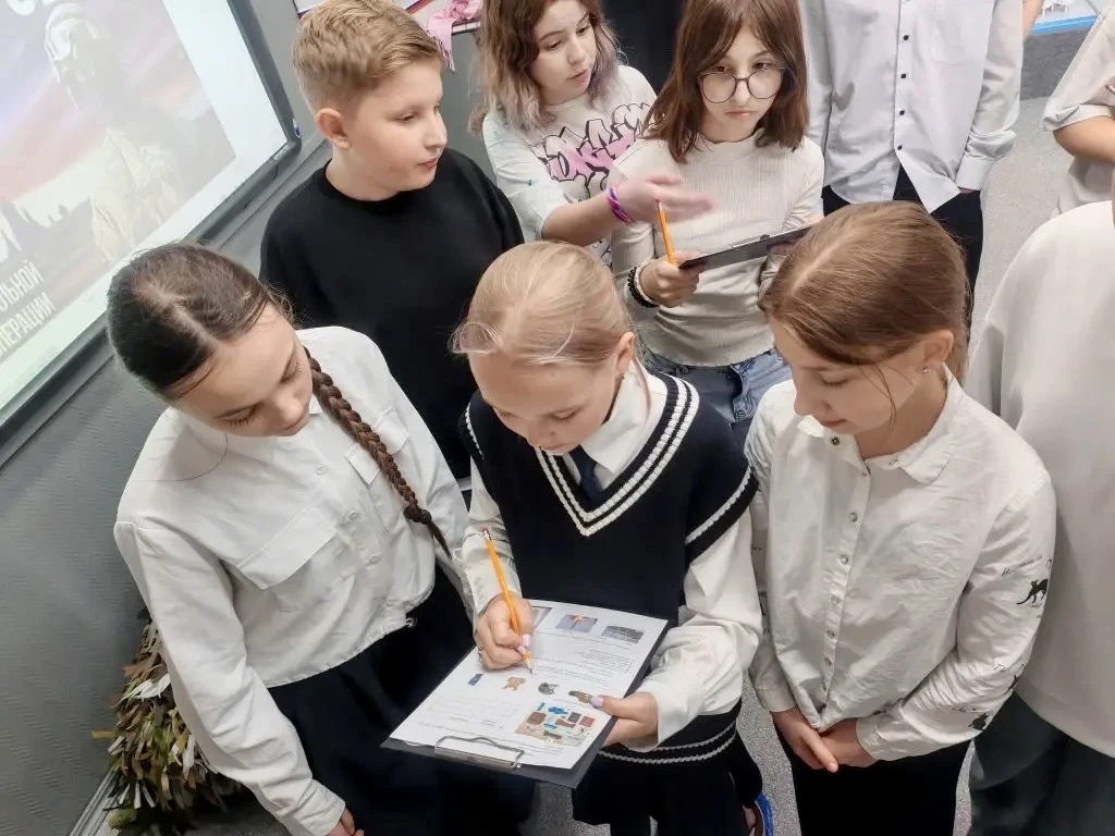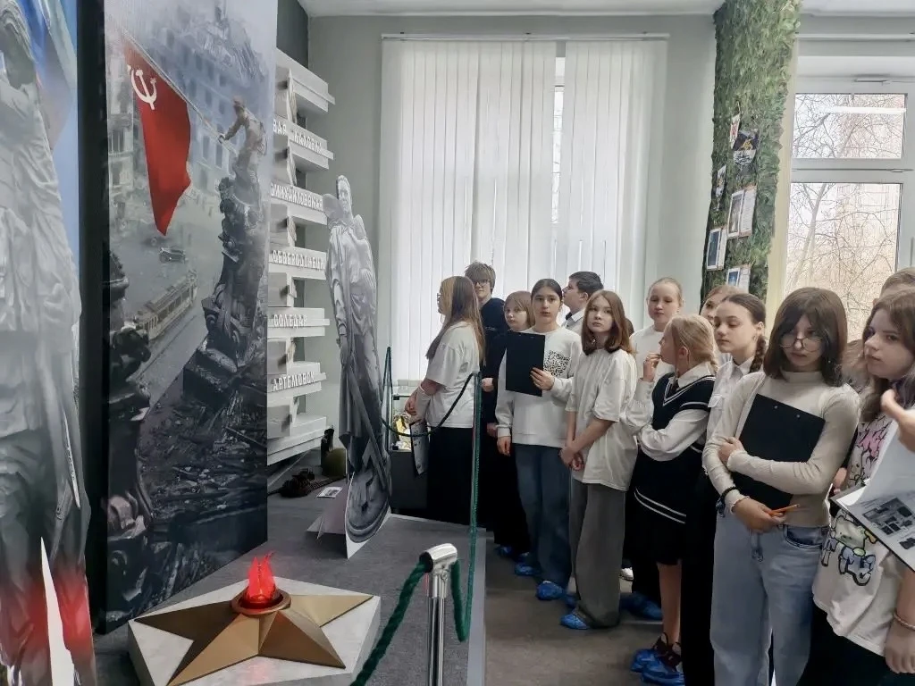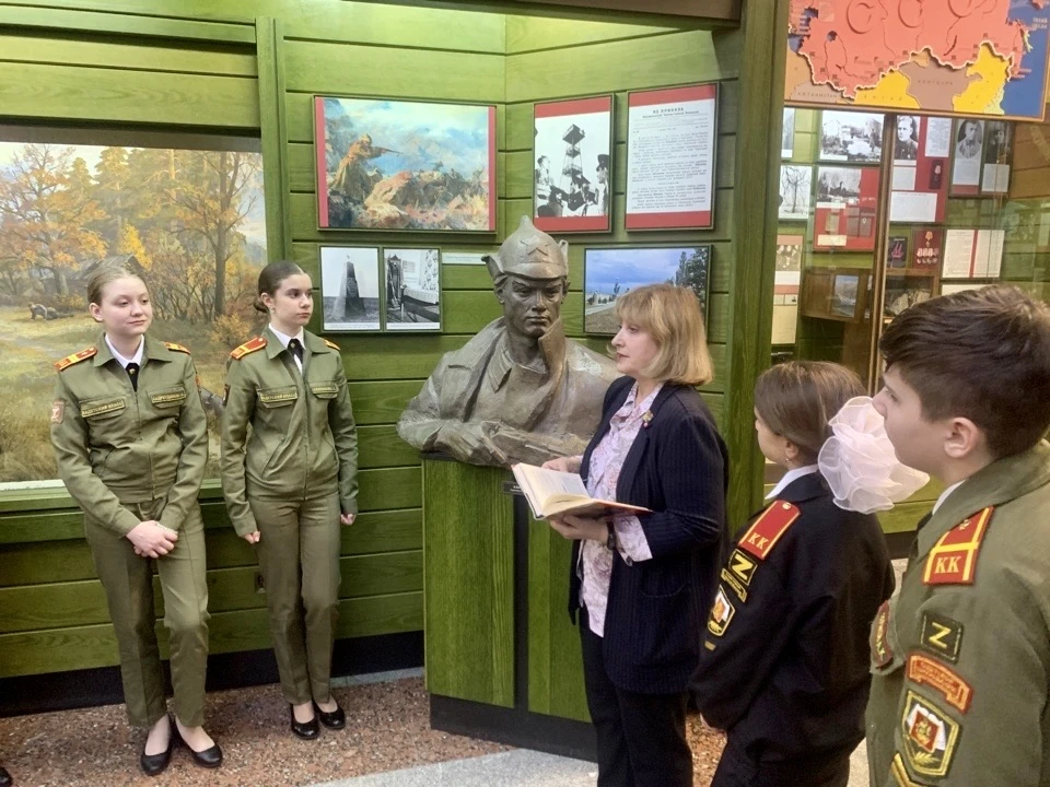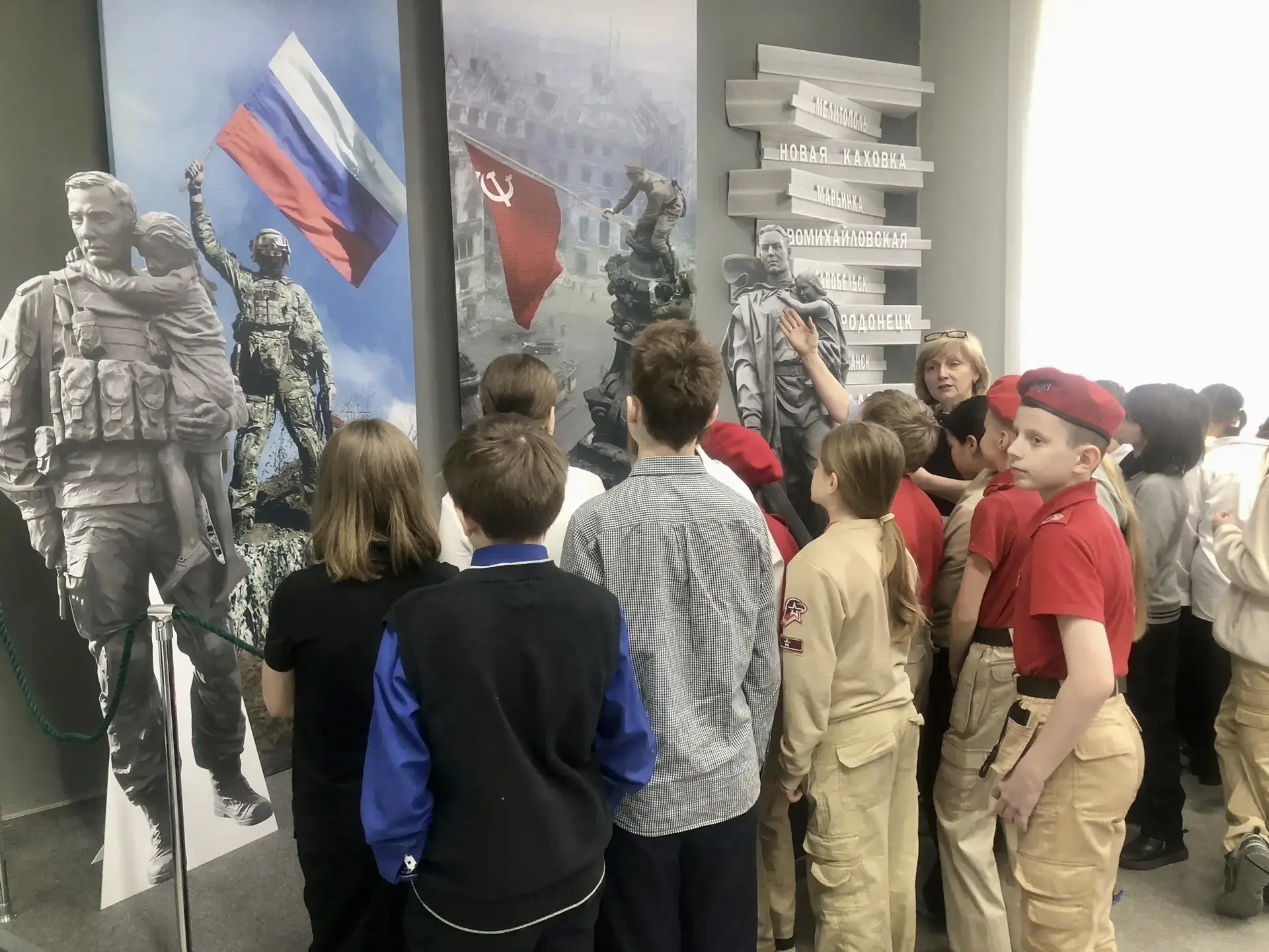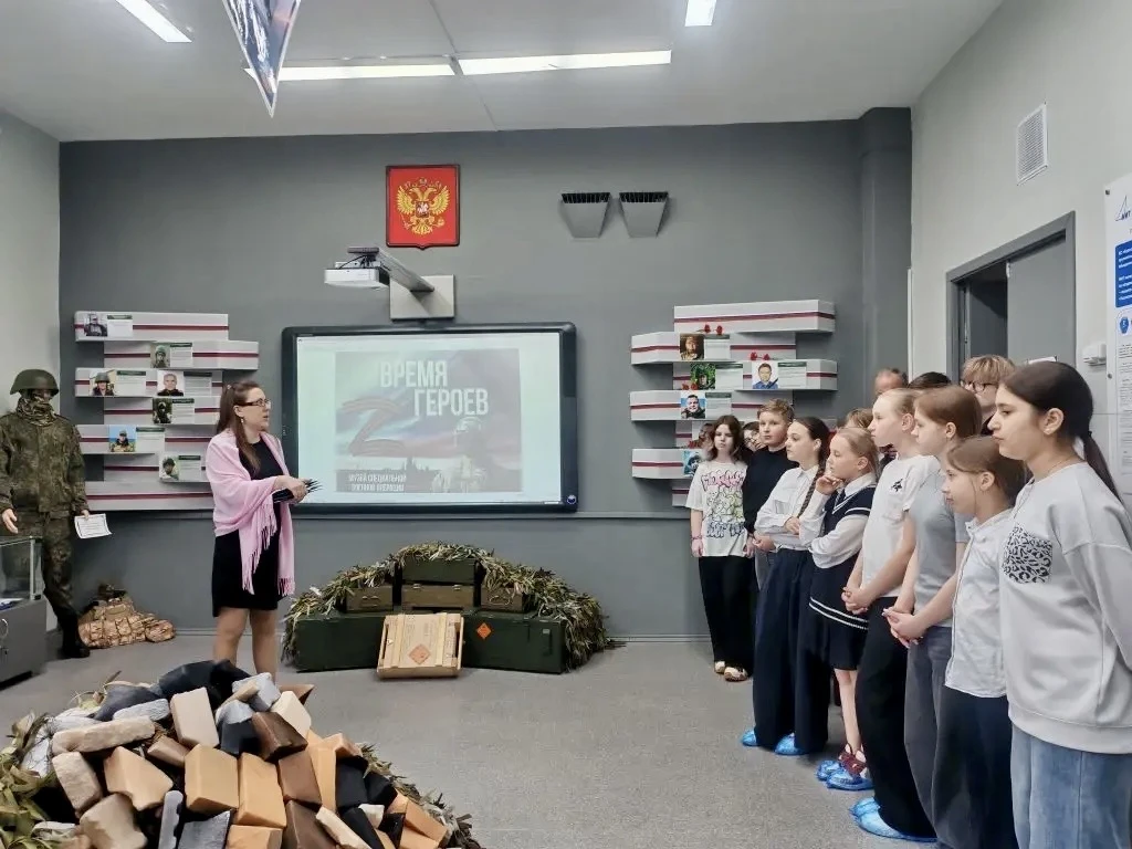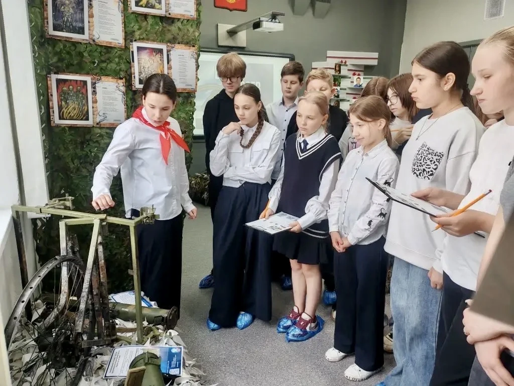 👥 Одними из первых посетителей экспозиции «Время героев» стали ученики 5-х классов и участники военно-патриотического клуба «Орлёнок».