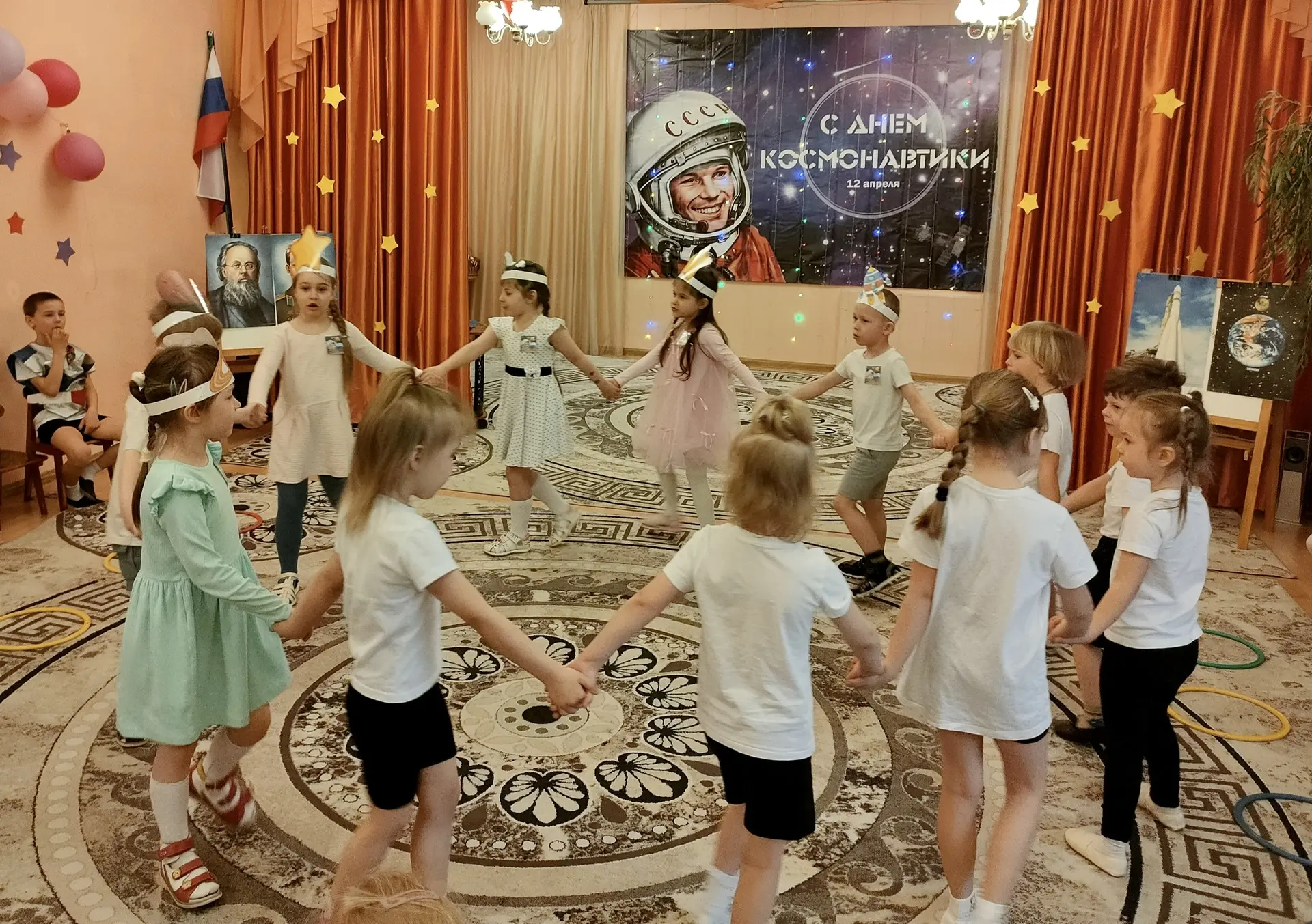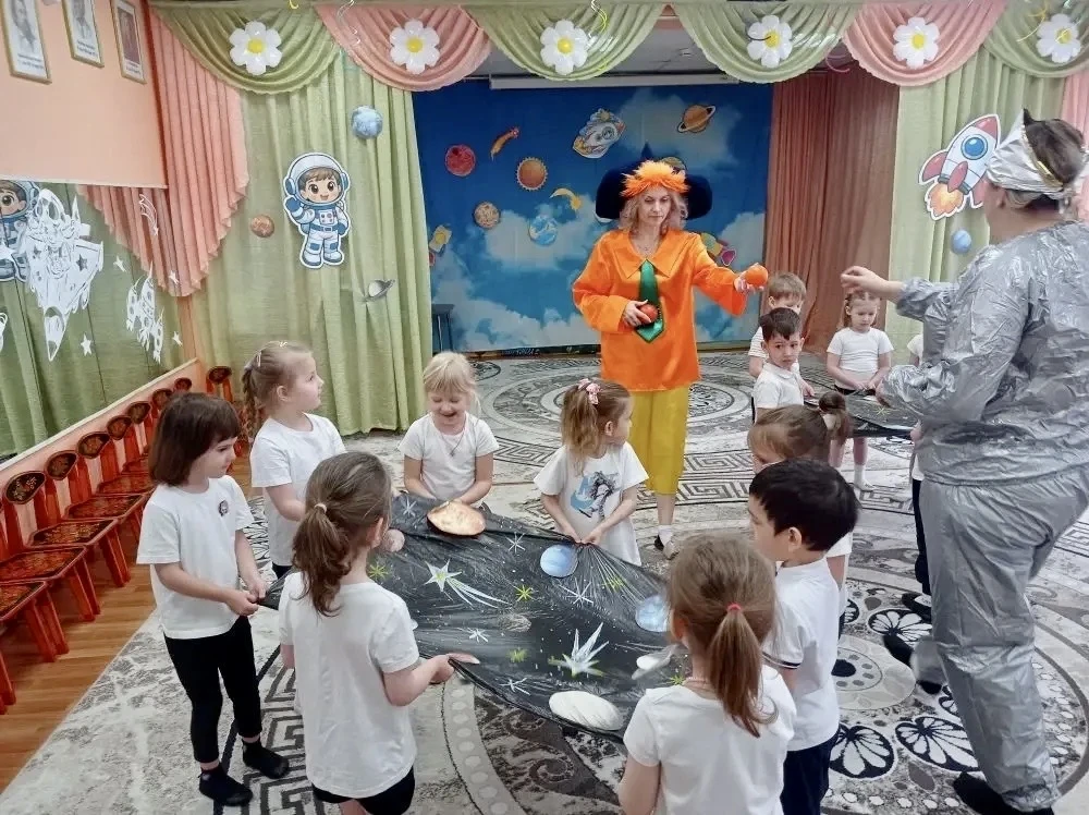 🌙 Старшие группы блеснули знаниями и командным духом: участвовали в викторине «Знатоки звёзд», выполняли спортивные задания и соревновались в смекалке и силе. Завершением праздника стал общий танец «Полёт в космос», ставший символом дружбы и стремления к новым открытиям.