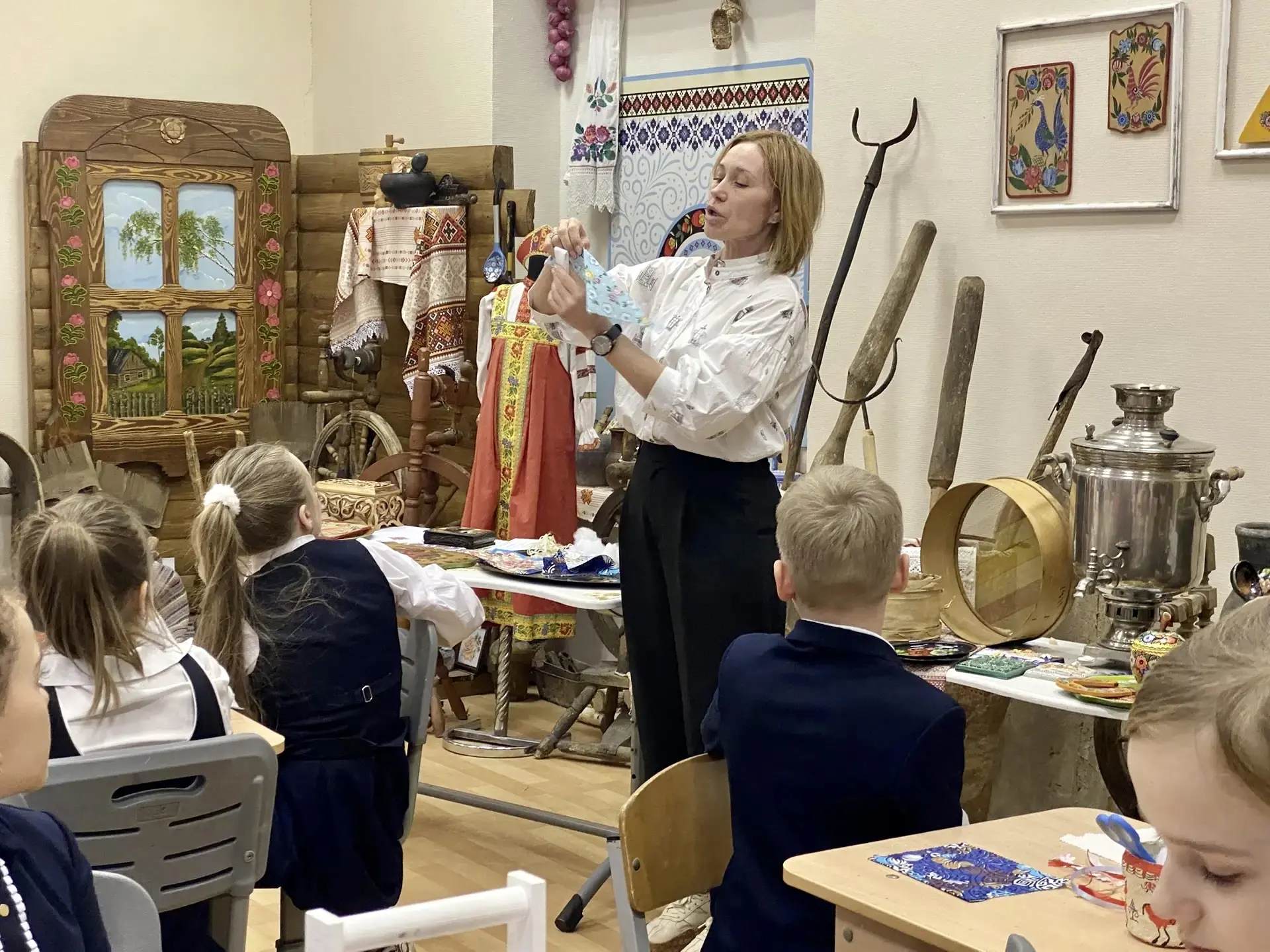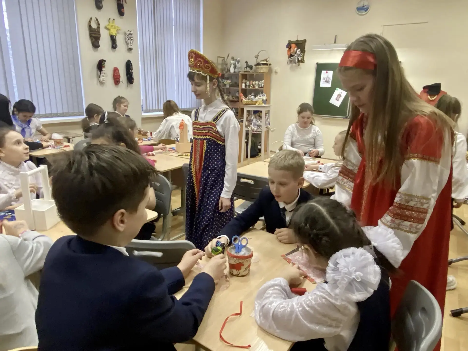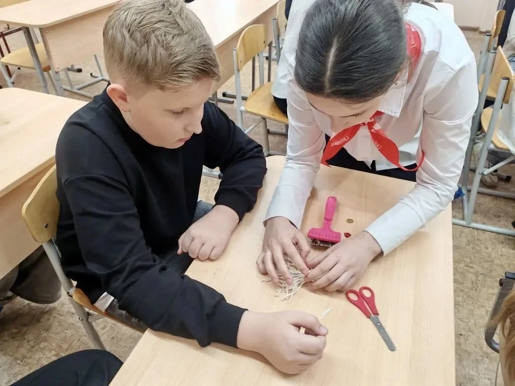 🎤 Перед началом творческой части к третьеклассникам обратился Виктор Матвеевич Новиков. Он объяснил юным гостям, почему 2026 год объявлен Годом единства народов России и как важно знать и уважать традиции каждого народа, живущего в нашей стране. «Единство начинается с малого — с уважения к своей семье, своей школе, своей культуре. А народная кукла — это маленький символ большой связи поколений», — подчеркнул Виктор Матвеевич.