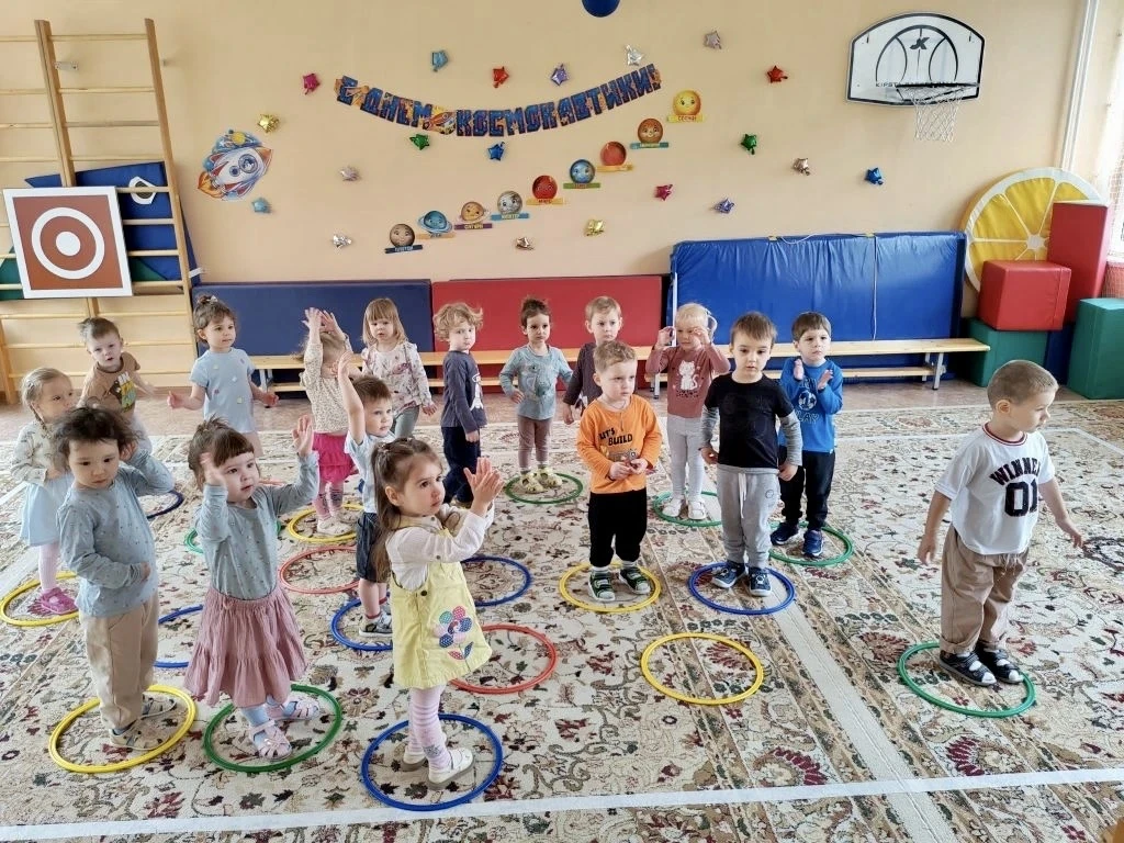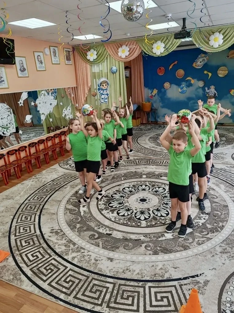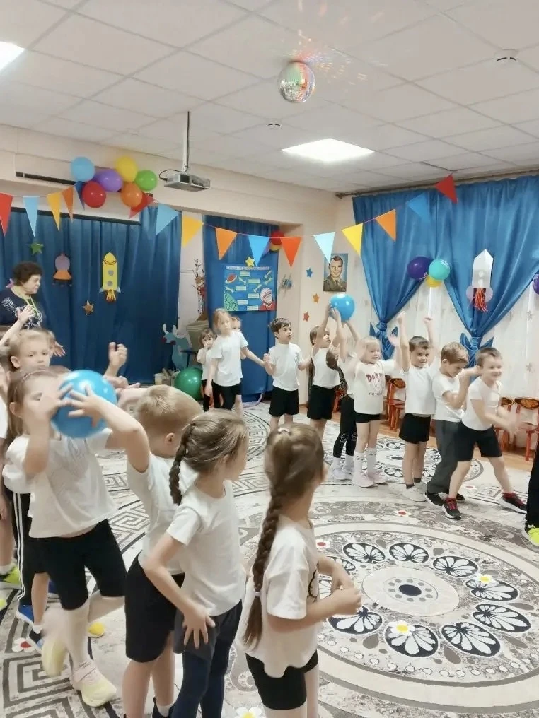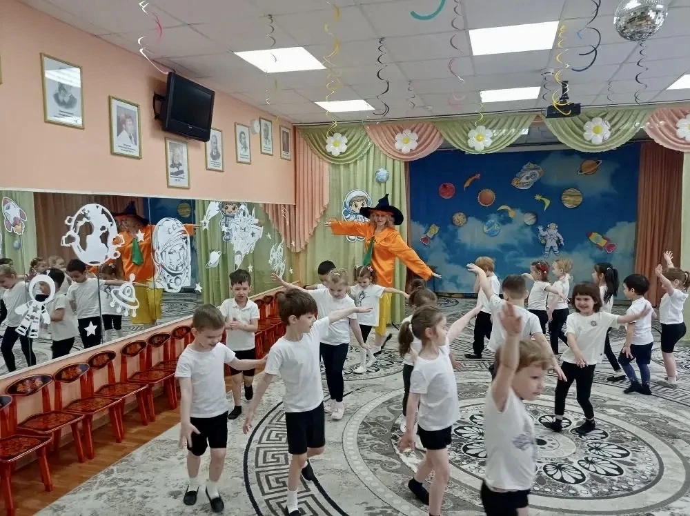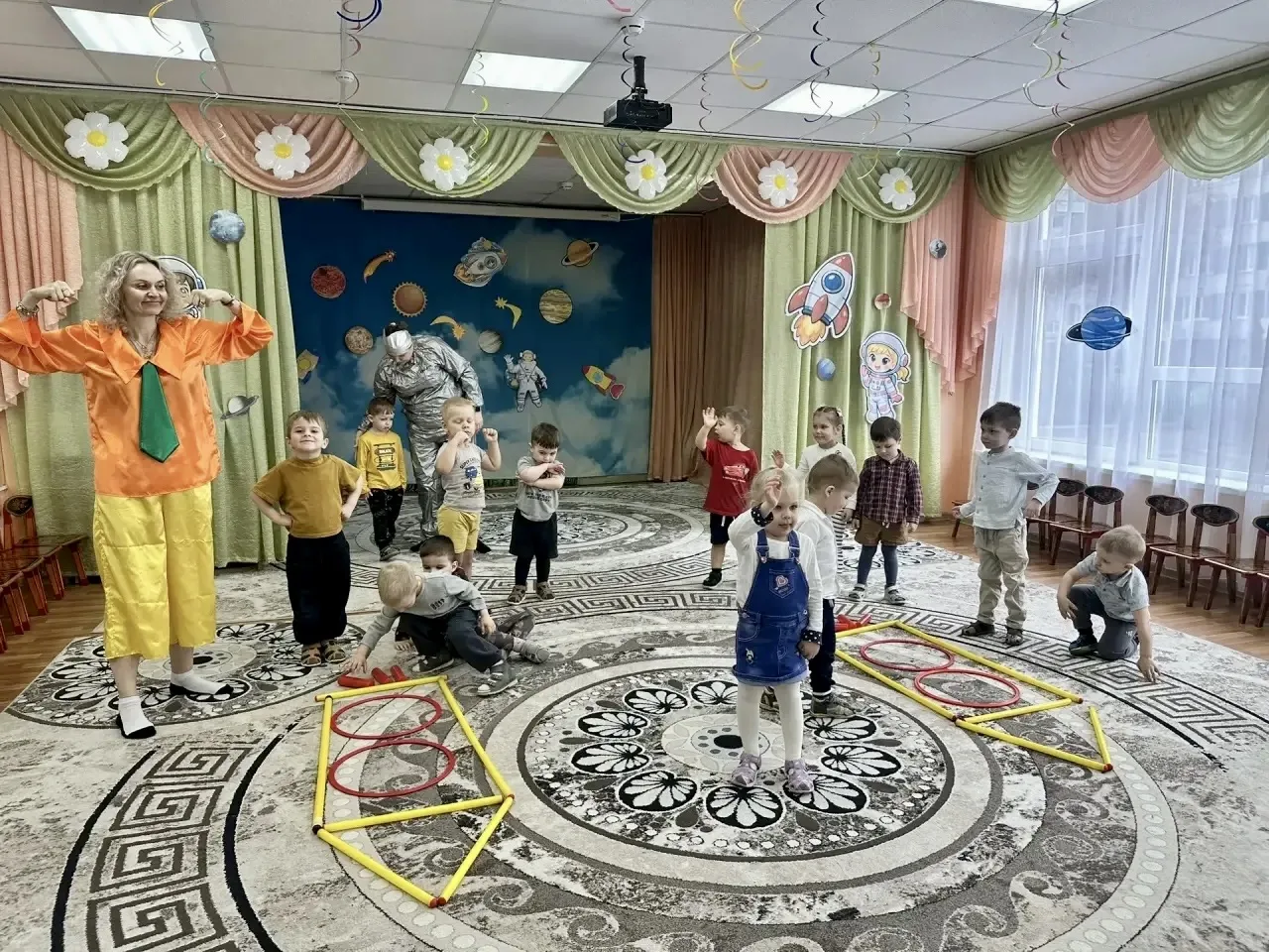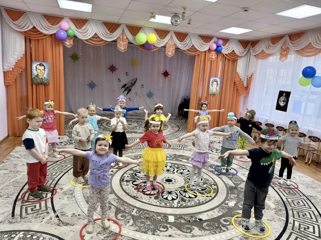 🌟 В преддверии праздника в дошкольном отделении корпуса 8 (ул. Бестужевых, 8Д) прошёл яркий музыкально-физкультурный досуг. Он стал настоящим космическим событием для всех воспитанников - от самых маленьких звёздочек до будущих первоклассников.