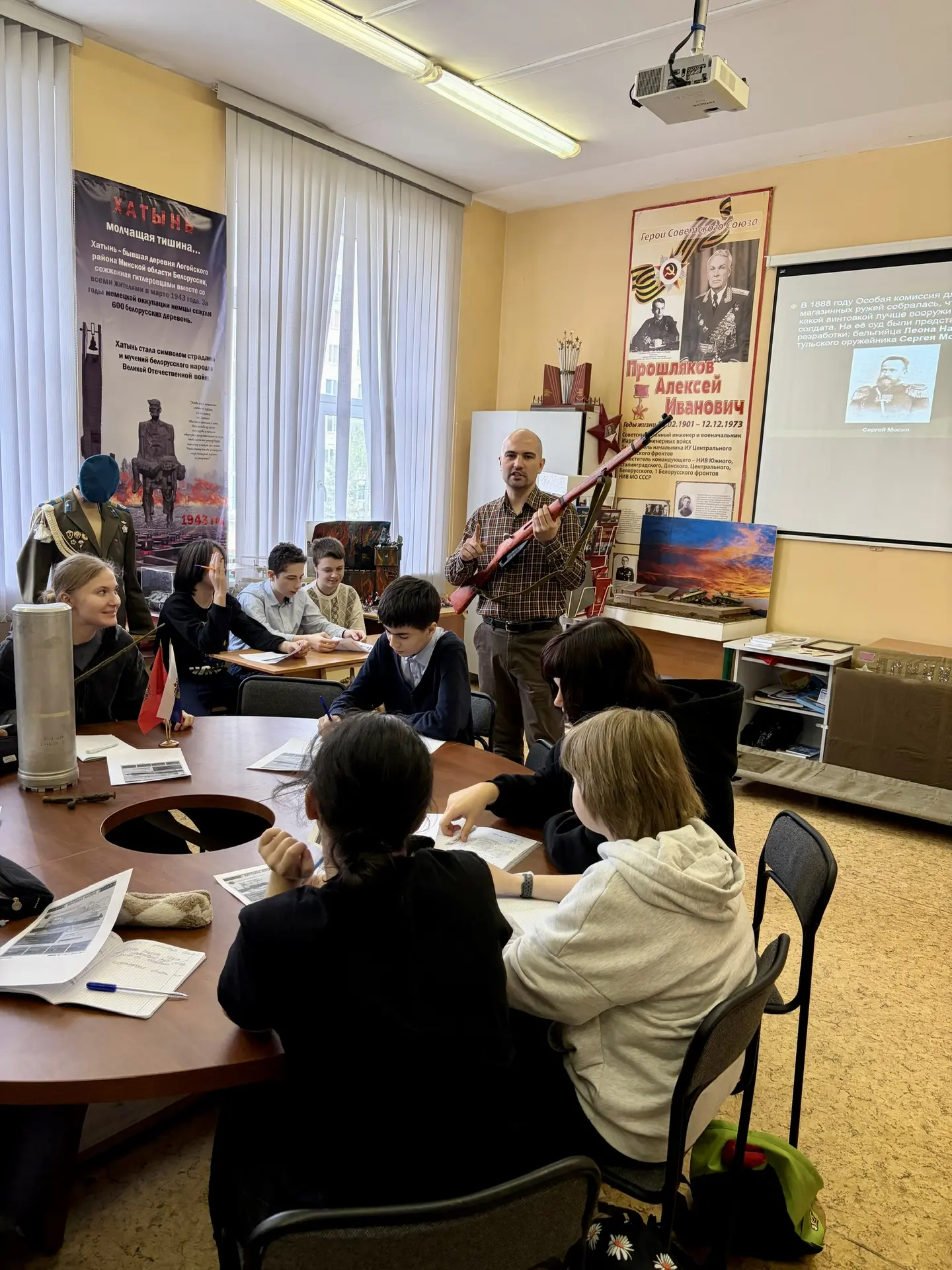 🎖Ученики 8 класса корпуса 4 (Алтуфьевское ш., 42Б) стали участниками тематического занятия в школьном музее «Инженерные войска России», где познакомились с легендарной винтовкой Мосина.