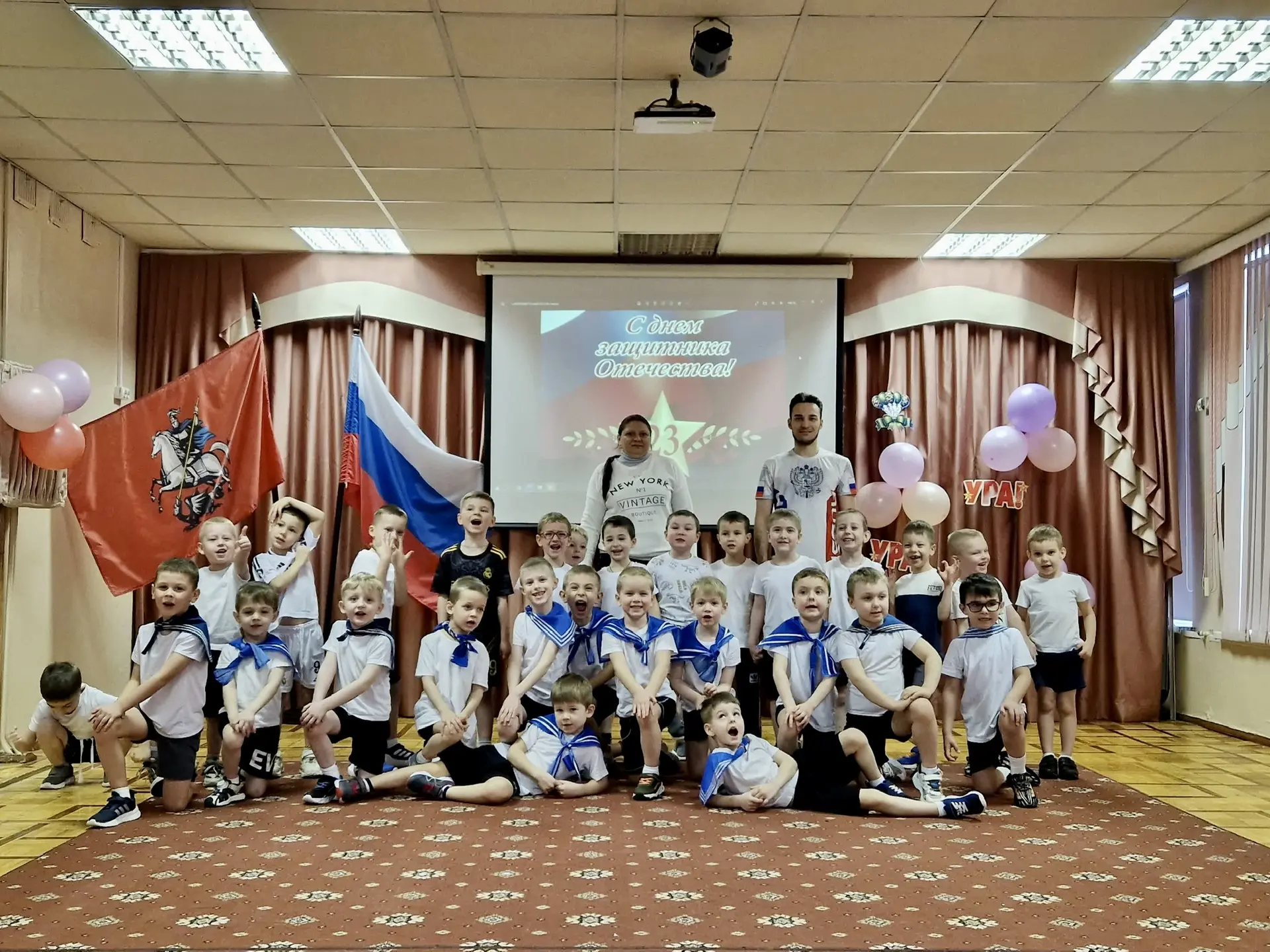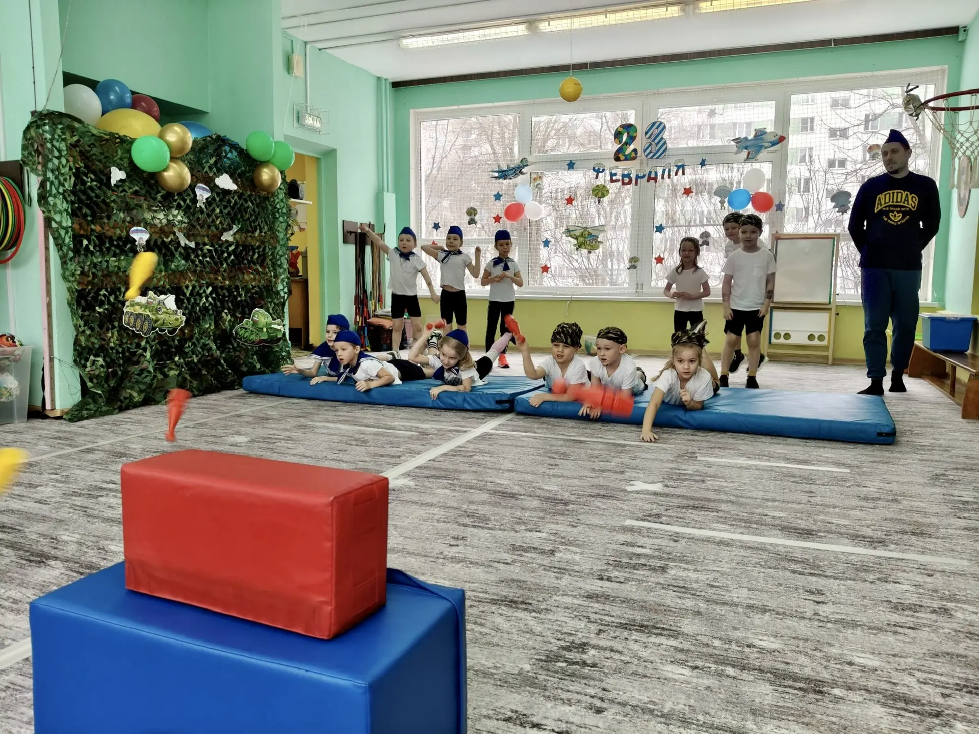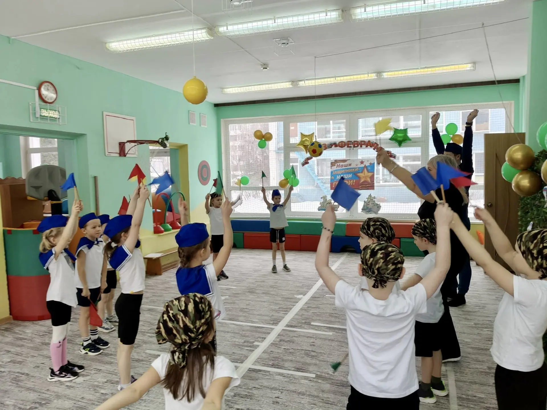 🔹В корпусе 14 (ул.Бестужевых, 7А) праздники прошли во всех возрастных группах. Звучали патриотические песни, дети танцевали, рассказывали о героях и военных профессиях. Главными гостями стали папы — они принимали поздравления и с азартом участвовали в конкурсах, подтверждая, что именно они — надёжная опора семьи.