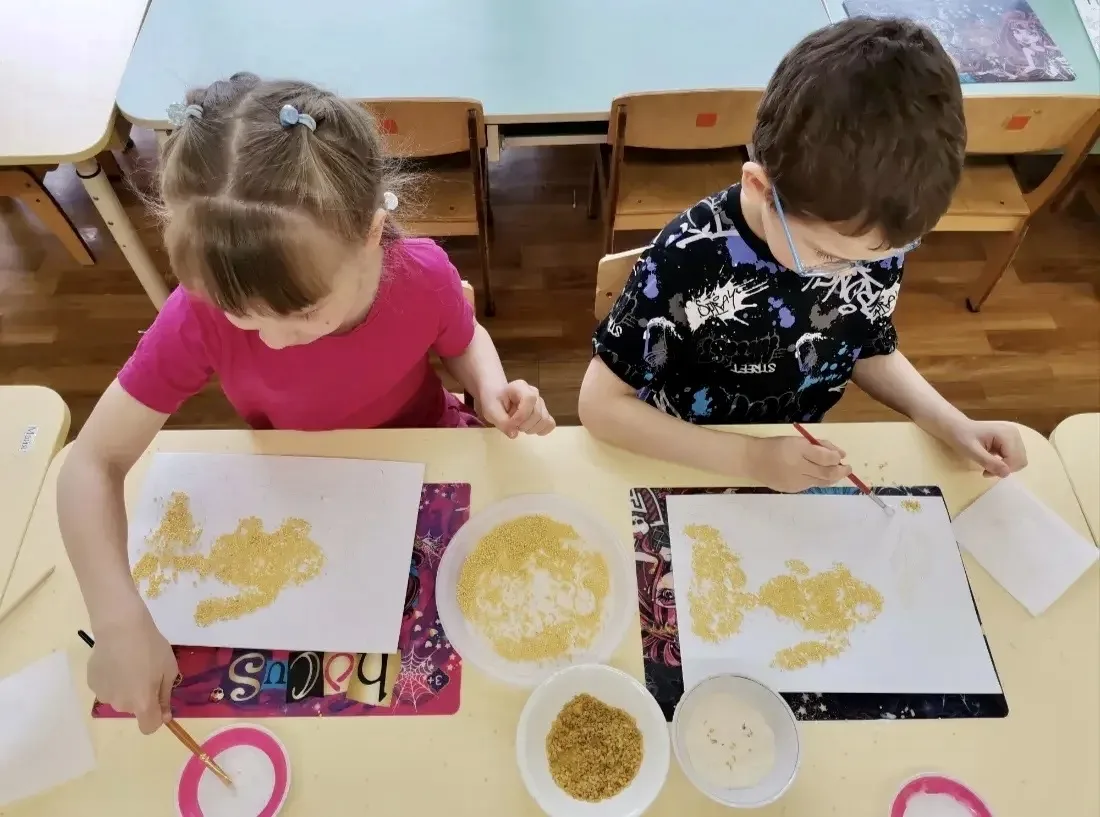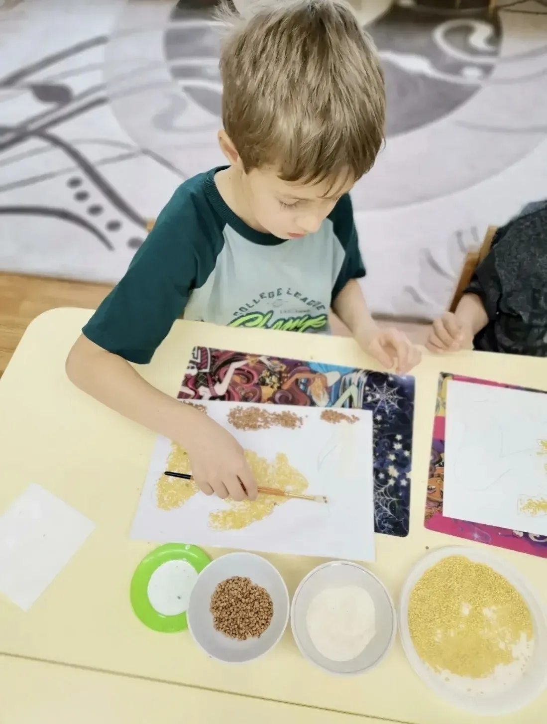 ✅Сегодня в дошкольном отделении корпуса 8 (ул. Бестужевых, 8Д), в старшей группе 3Б, ребята отправились в увлекательное «погружение», где обычные на первый взгляд крупы — гречка, пшено и манка — превратились в элементы морского пейзажа и его обитателей.