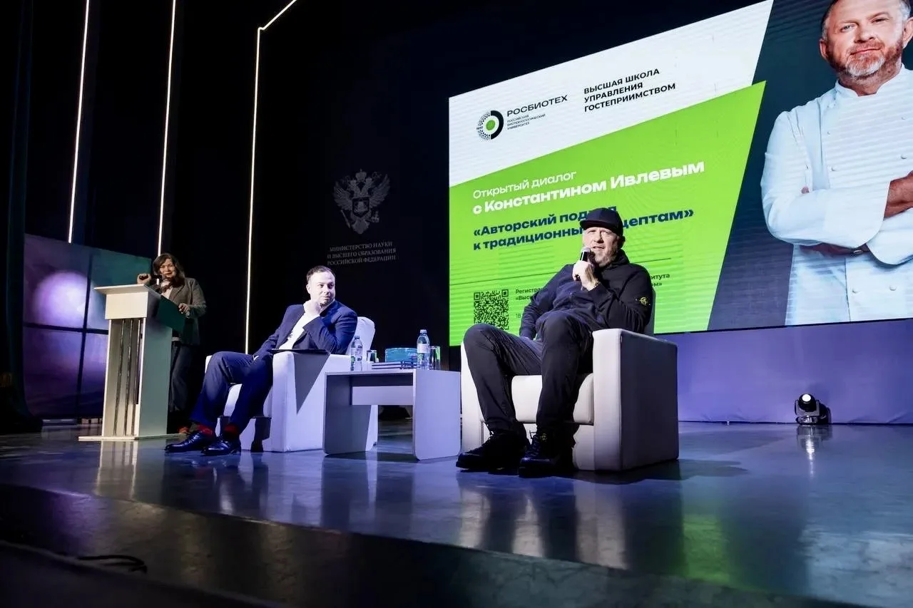 🍽️ Обучающиеся 9«Н» и 10«Д» классов корпуса 5 (ул. Бестужевых, 25Б) посетили открытый диалог с Константином Ивлевым в Высшей школе индустрии гостеприимства РОСБИОТЕХа.